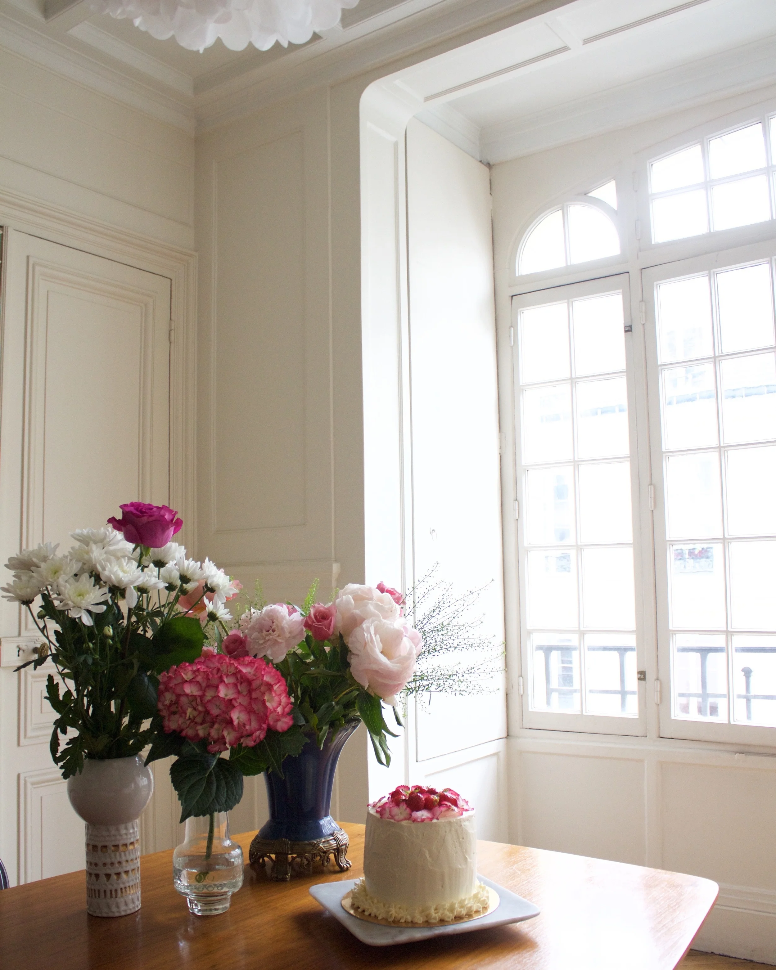 Summer has been in short supply this month in Paris. Luckily our farmers markets have been a bright reprieve with baskets of overflowing summer berries. Since moving here nearly four years ago I have tried with great pleasure to distinguish between all the different types of strawberries on offer. Varieties you might see include gariguette, mara des bois, anaïs and my personal favorite, lovely little fraise des bois. Each variety is slightly different in flavor and fragrance. I've paired some of them with rhubarb for a wonderful compote, making for an excellent cake filling, while others were used as a simple yet elegant garnish atop a frosted layer cake. Most recently I tried my hand at the classic Victoria Sponge which calls for a layer of strawberry jam sandwiched between two light as air sponge cakes and fresh whipped cream., Heavenly!