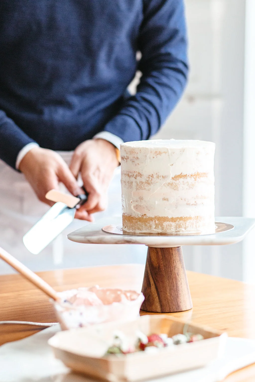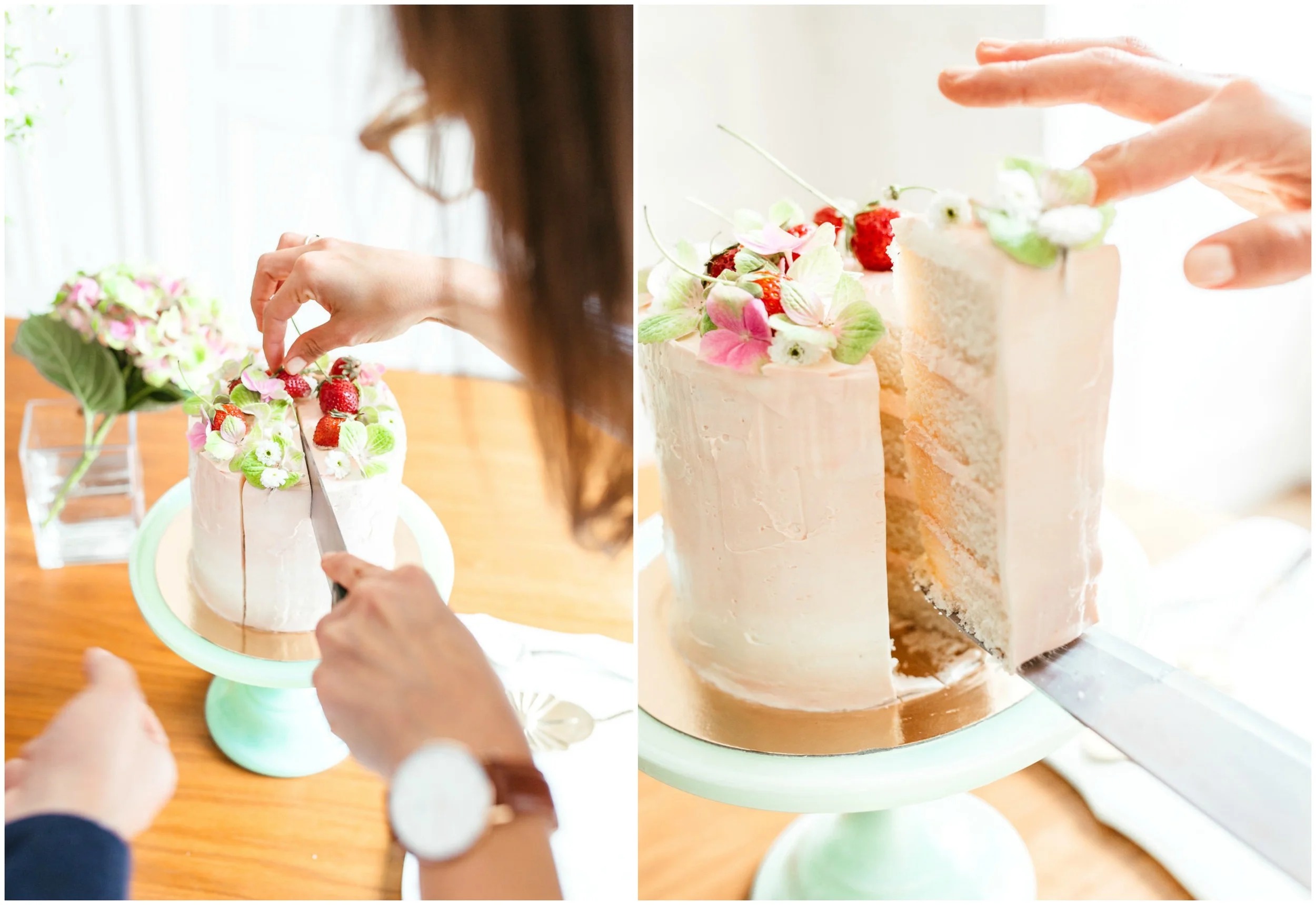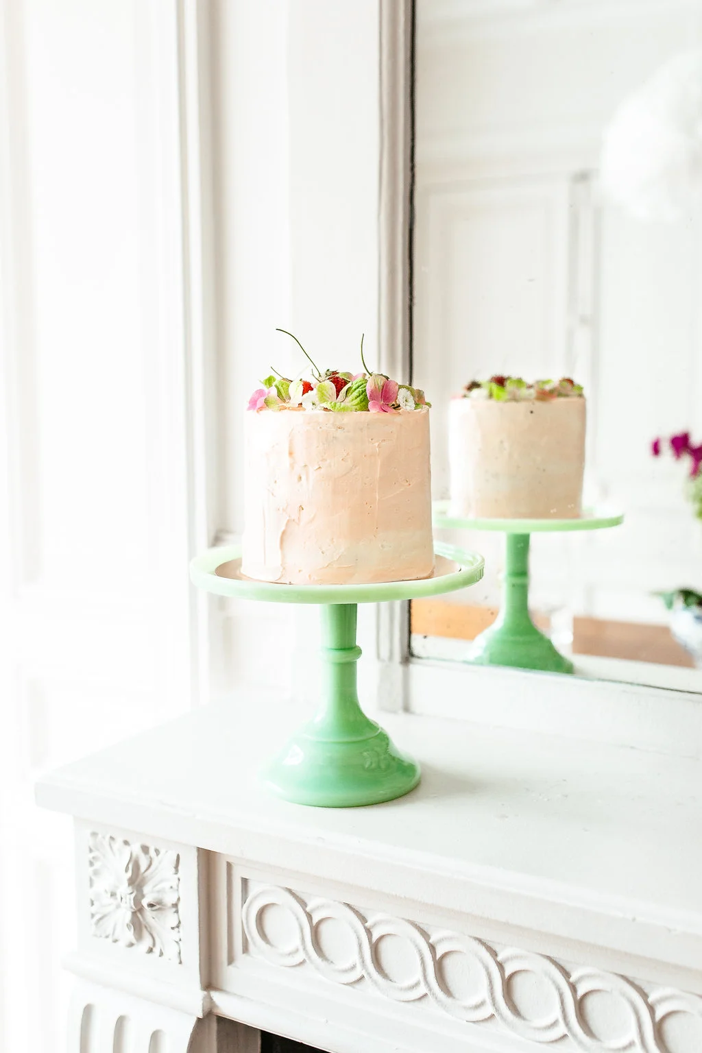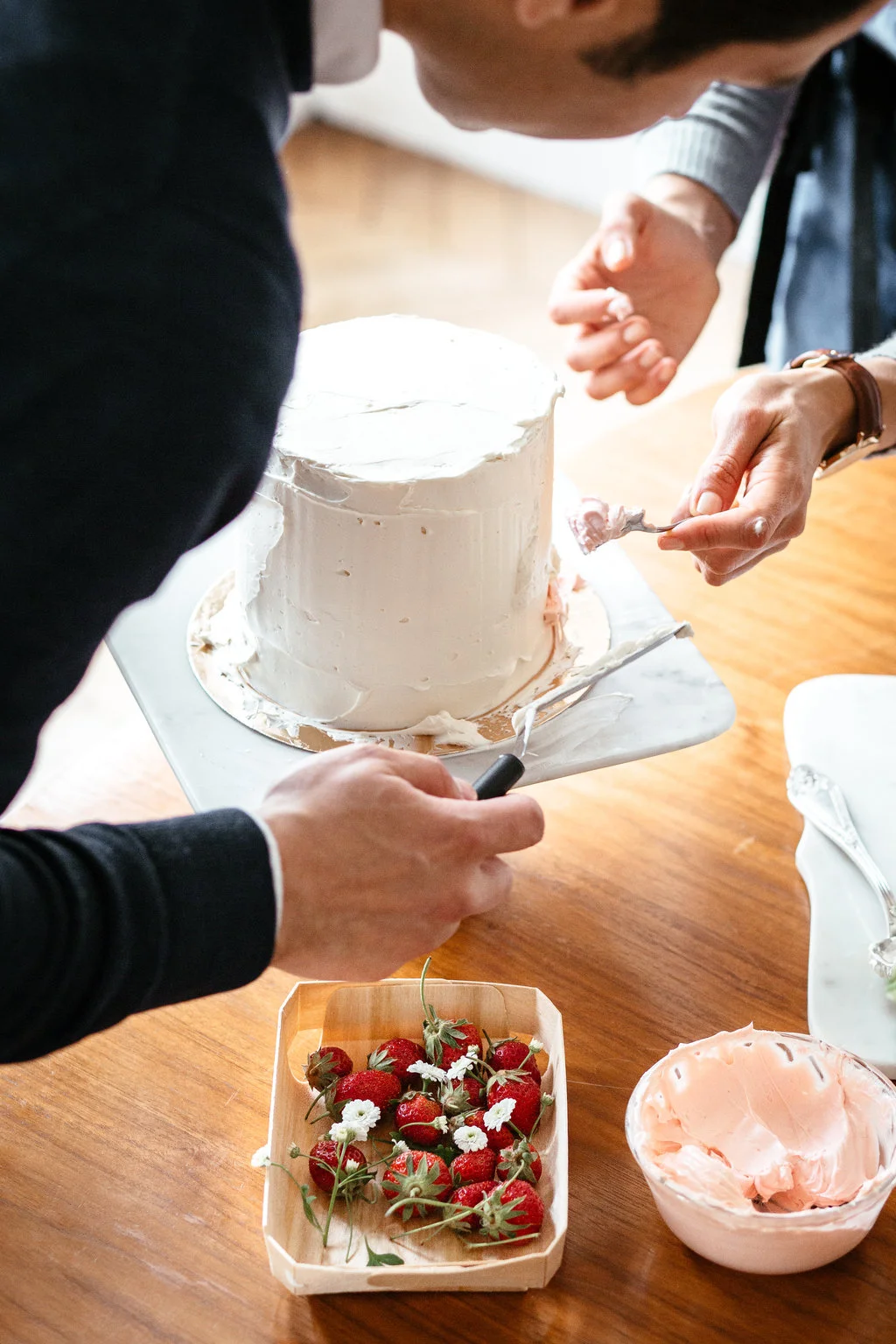 Last month I got to welcome back to town my beautiful cake sister, Jen Drew! Most of our time was spent wandering around Paris and cake-storming over coffee at our favorite cafés. We got up to lots of baking projects including this sweet little vanilla cake with strawberry buttercream. As it happens a friend from Switzerland was also in town to document a day spent foraging for ingredients at the markets and flower shops of Le Marais!