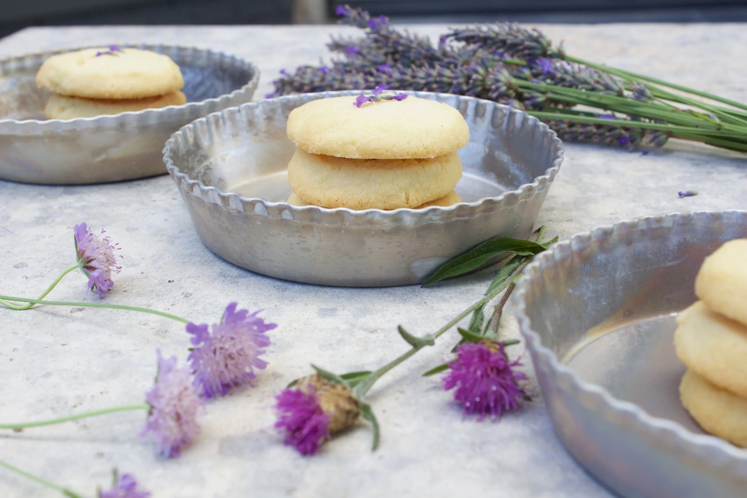The charming country roads were lined with lavender so for our last day I thought it might be fun to have a garden party using it as baking inspiration. Buttery shortbread biscuits are a classic tea time treat and the addition of lavender seemed like the perfect pairing for a floral country garden party for two.
