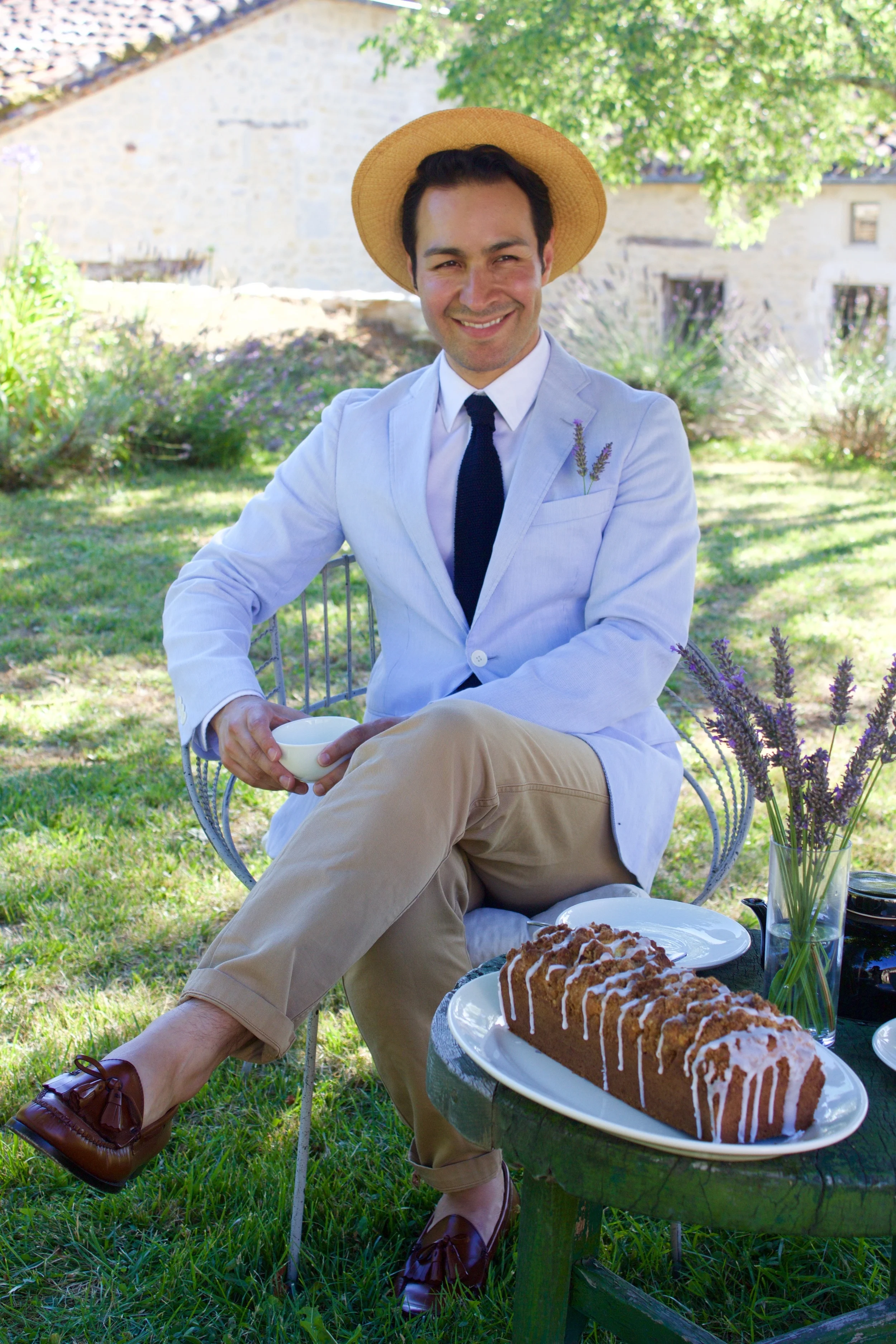 I served the biscuits alongside a peach streusel tea cake and a pot of jasmine tea. From our little perch in the garden we enjoyed views overlooking the valley and the neighboring 17th century château which also happens to produce a very tasty Malbec wine. After tea we played a round of pétanque while trying to dissuade the dog (with little success) from chasing each silver ball that was thrown.