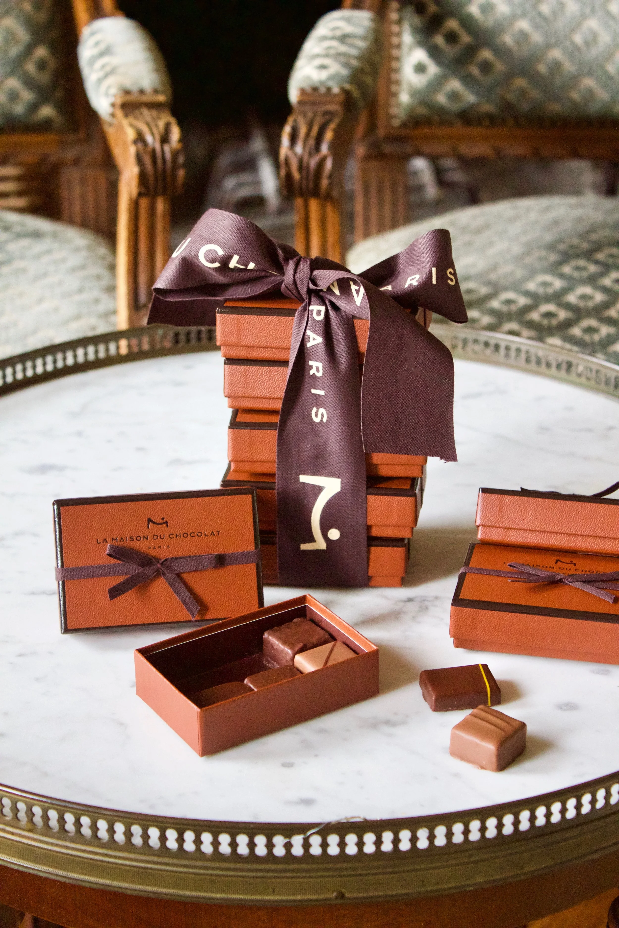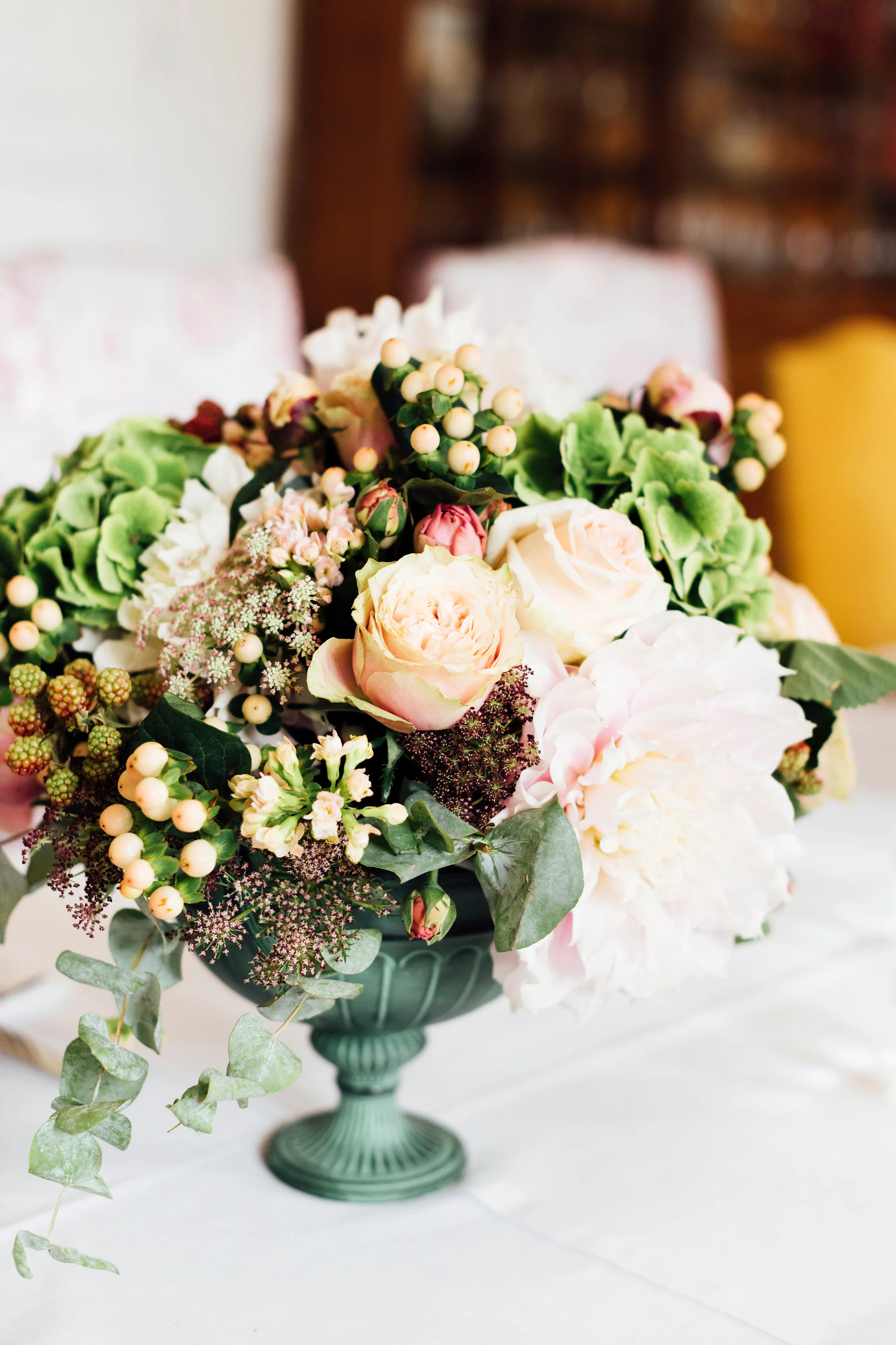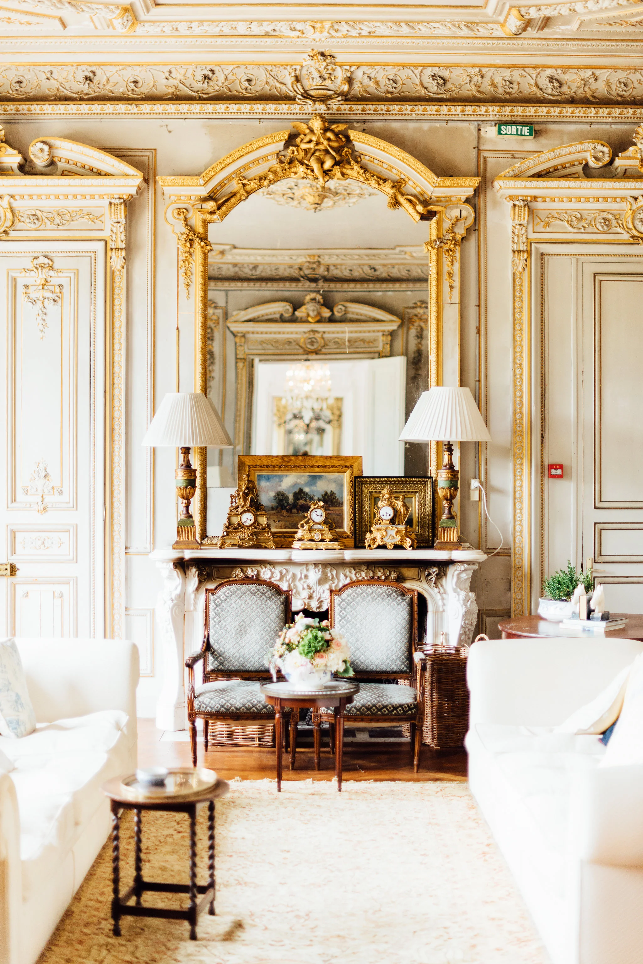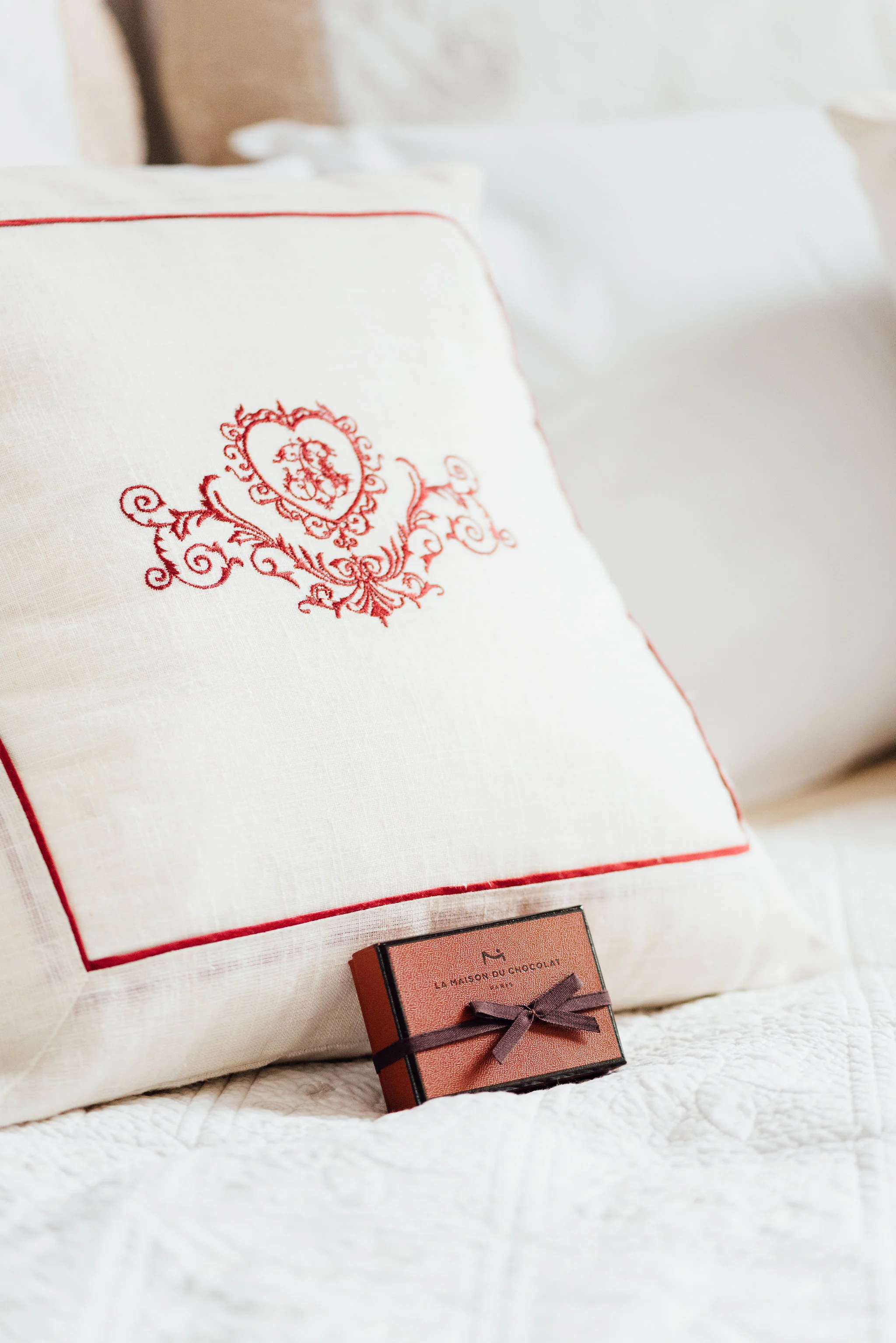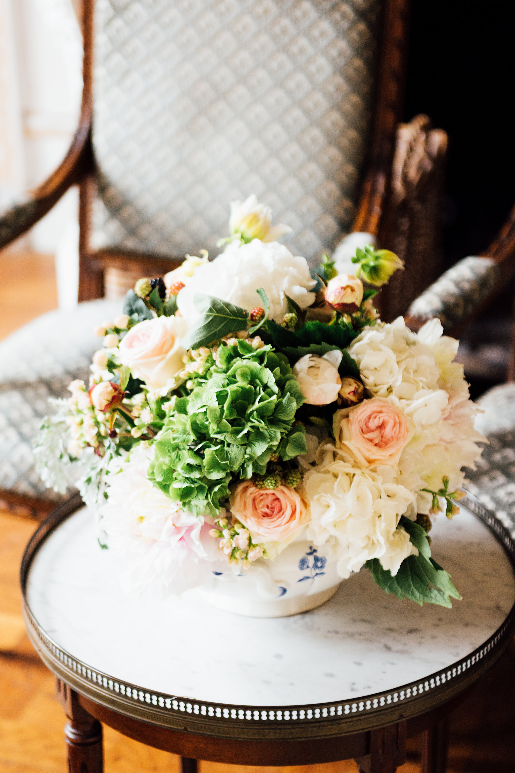 The weekend wouldn't have been complete without a few small details meant to add a little glamour to the occasion. Iconic boxes of chocolates from one of my favorite houses in Paris, La Maison du Chocolat were placed throughout the château for guests to find, making for a very sweet surprise. Flowers by Estelle Preston spilled extravagantly out of various vessels throughout the rooms. Dahlias dangled next to giant garden roses in pastel hues mixed perfectly with branches of wild berries. It all came together for a wonderful weekend of summer magic, so stay tuned for the arrival of the guests in Part 2: The Party!