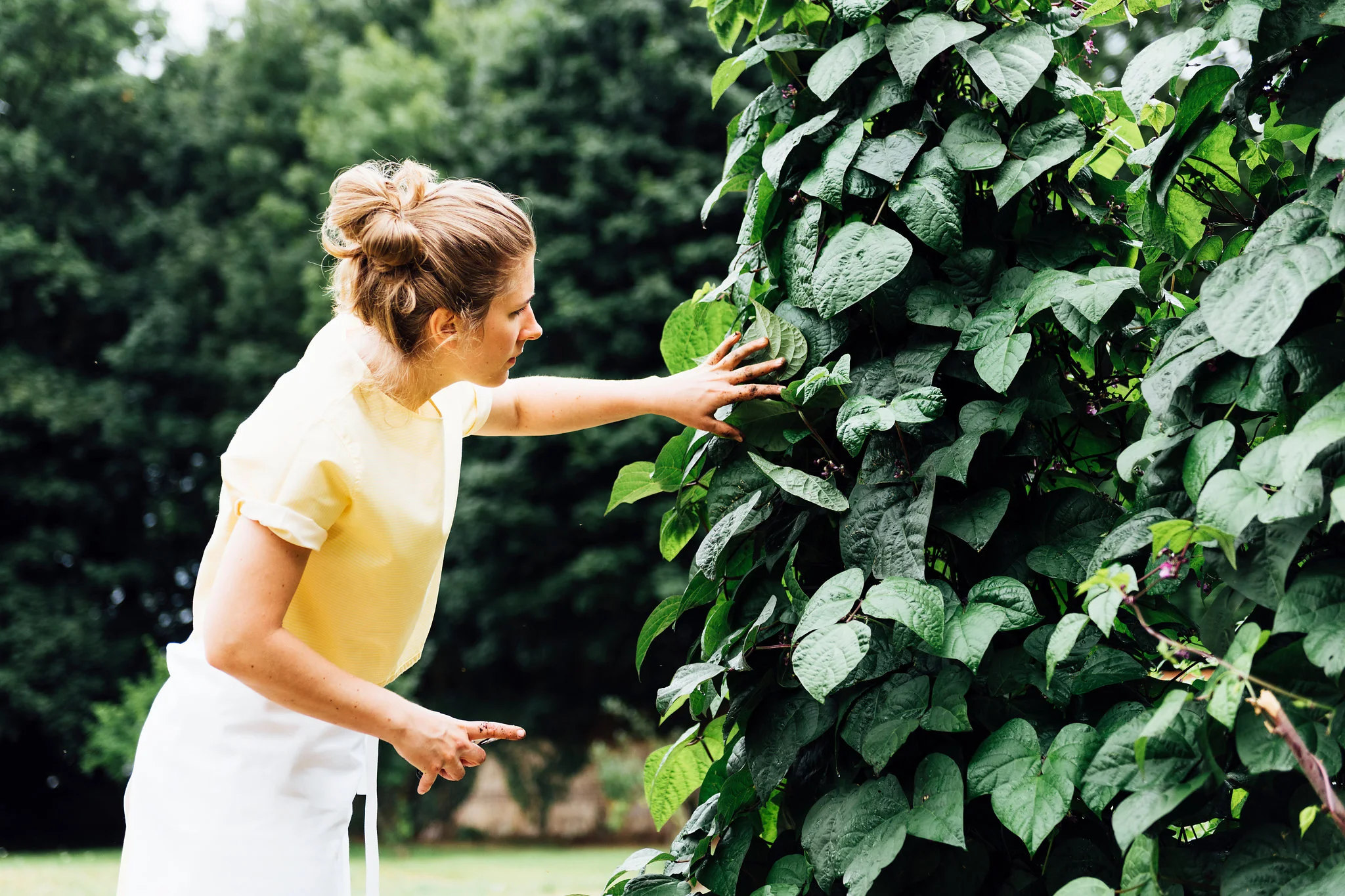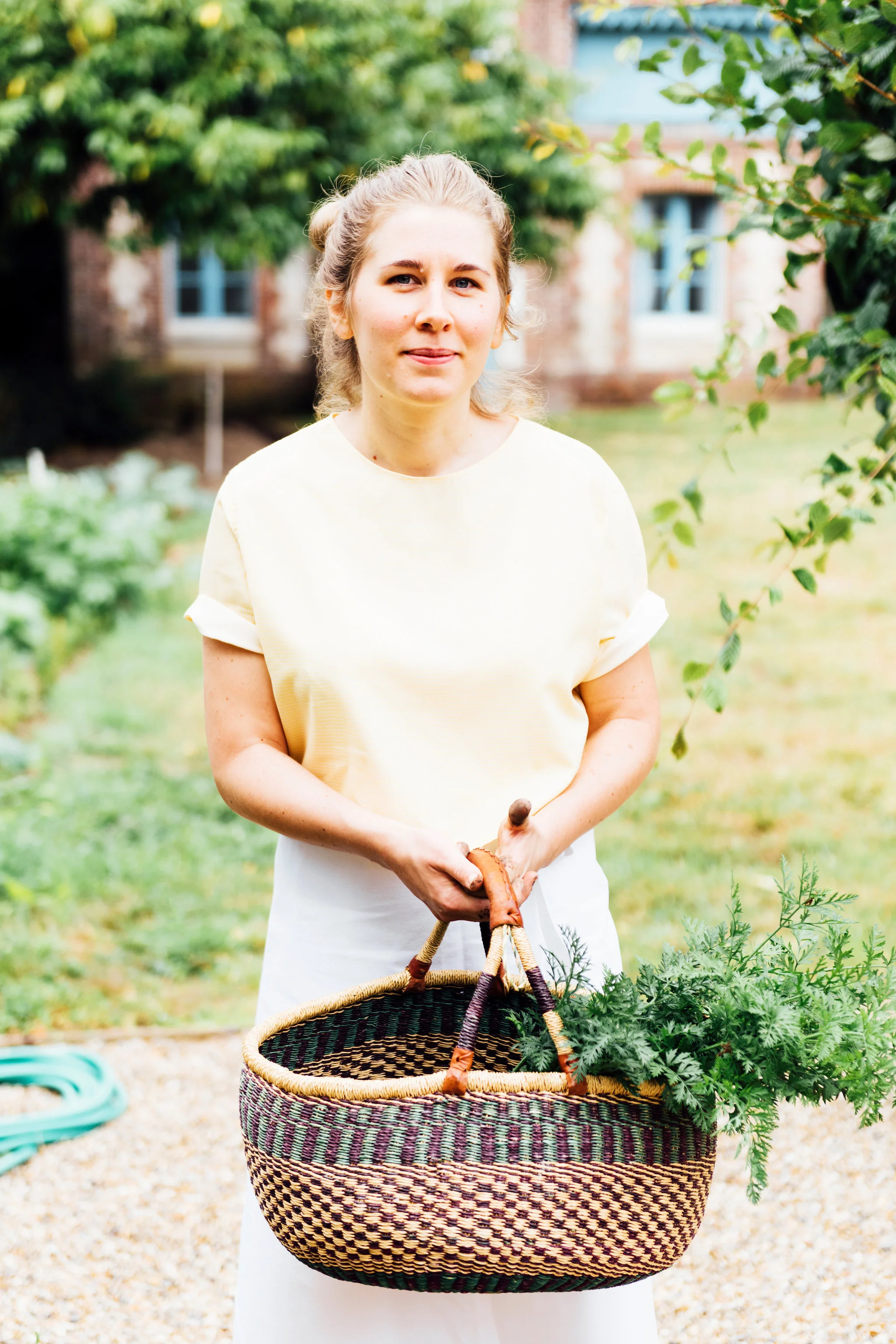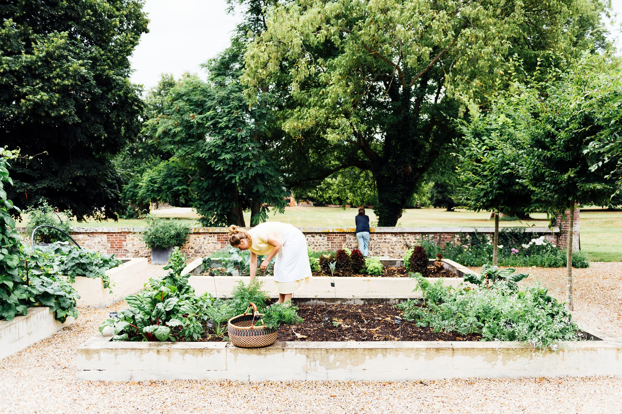 Our chef Linda Granebring spent the entire morning puttering around in the château's lovely potager. Edible flowers and seasonal greens were selected in preparation for the spectacular dinner menu she created for the occasion. We discussed highlighting the concept of summer on a plate with vegetables in the starring role.