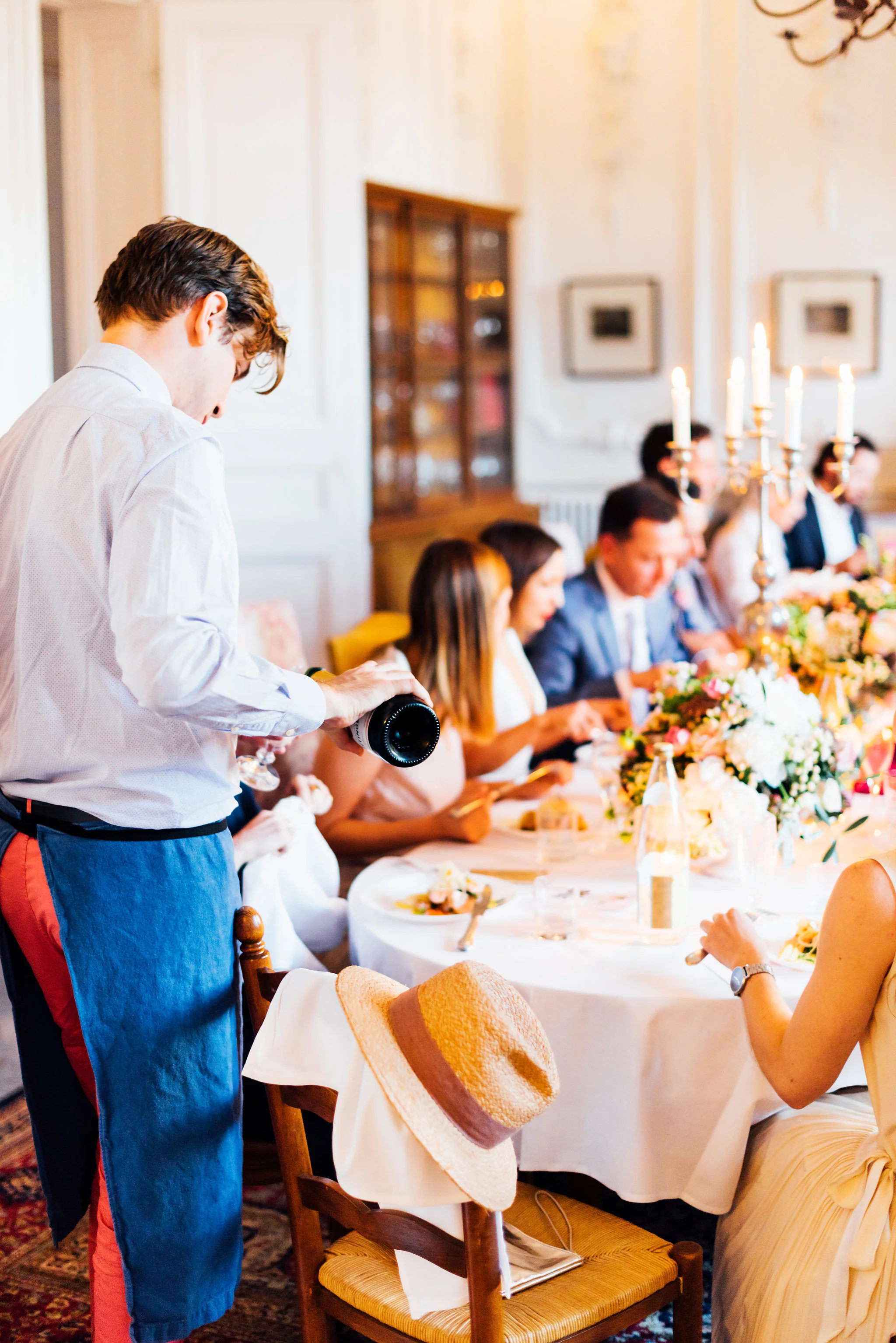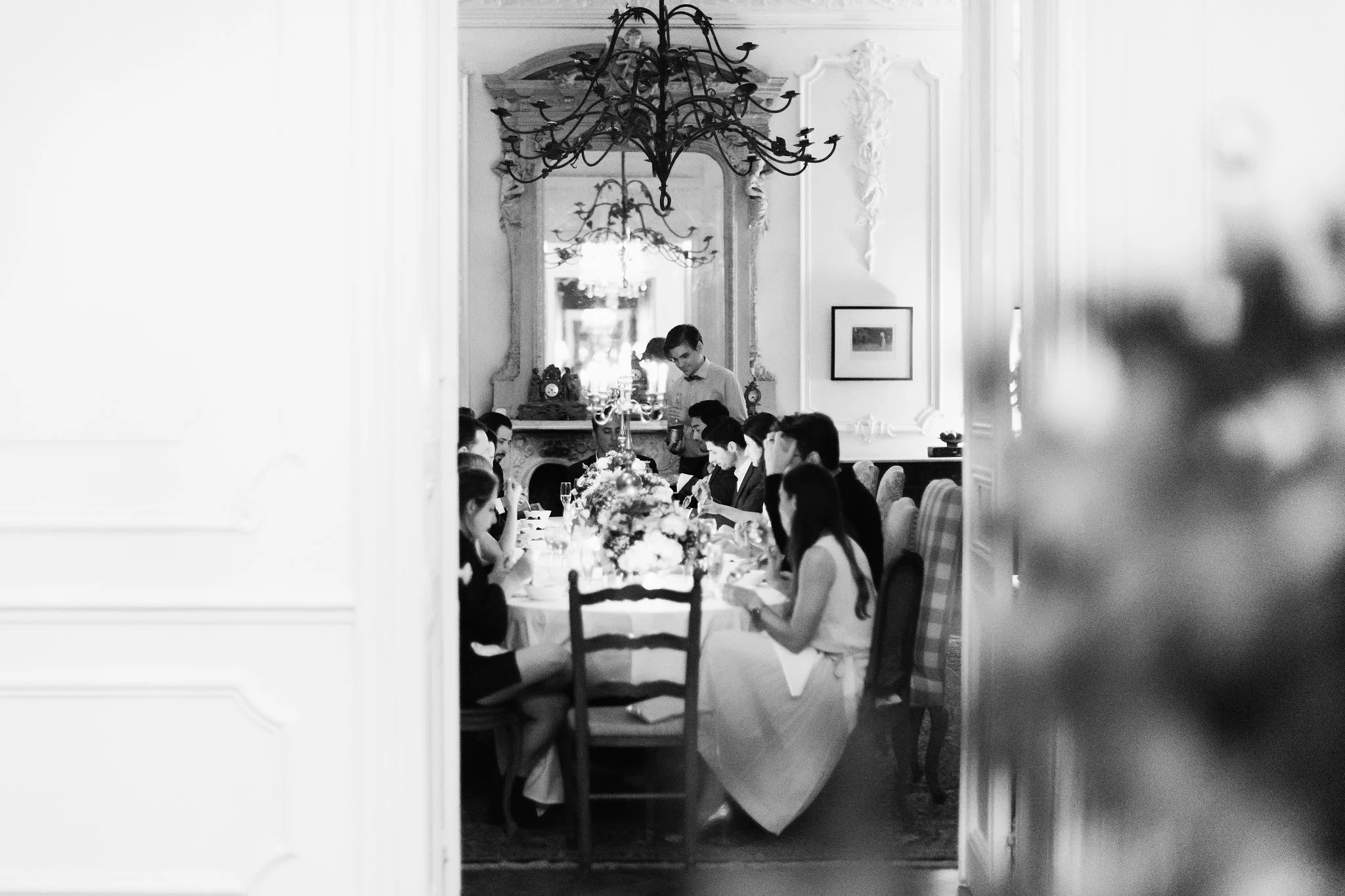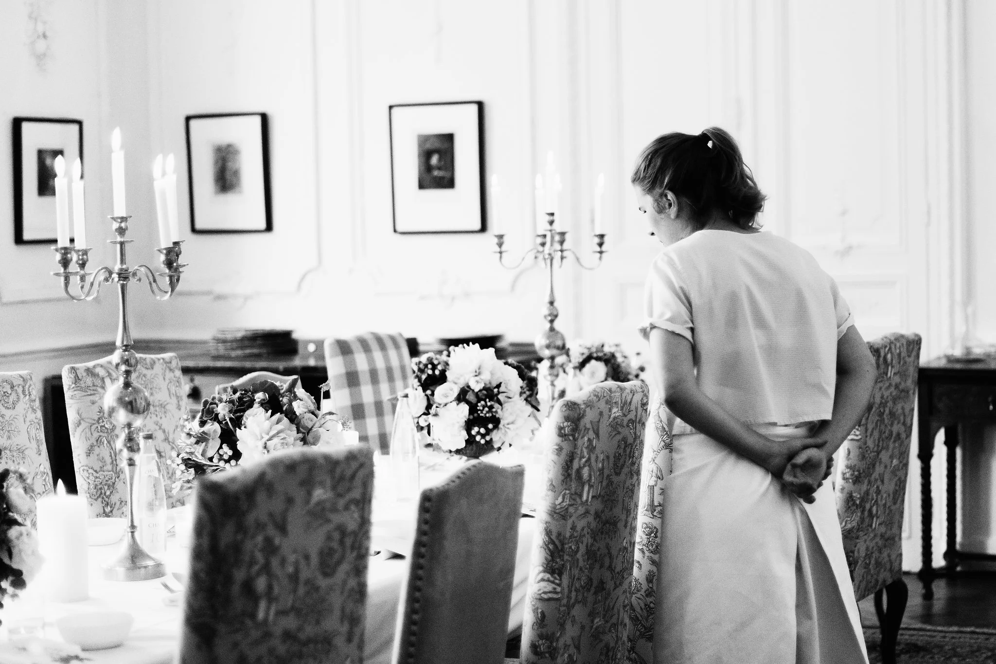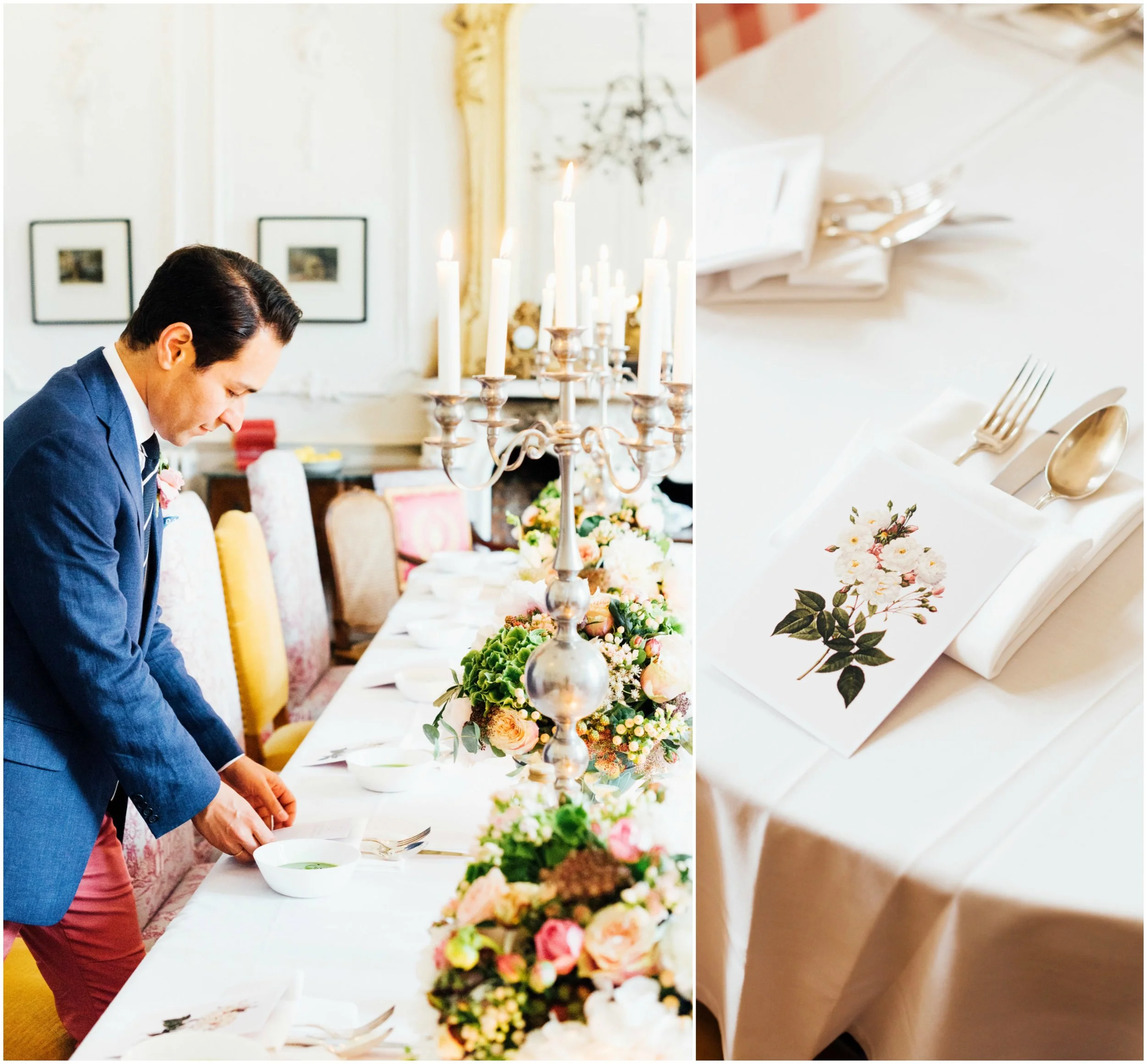 Our original plan for the celebration was to host a glamorous garden party outdoors, underneath the shade of the Linden trees. However, after waking up Saturday morning to discover misty gray clouds had rolled in, we thought better of it. As a nice compromise we opted for cocktail hour in the garden followed by dinner inside the candle-lit dining room of the château. Before all this could commence, we pressed our best dress shirts and shined our shoes in anticipation of the arrival of all the guests.