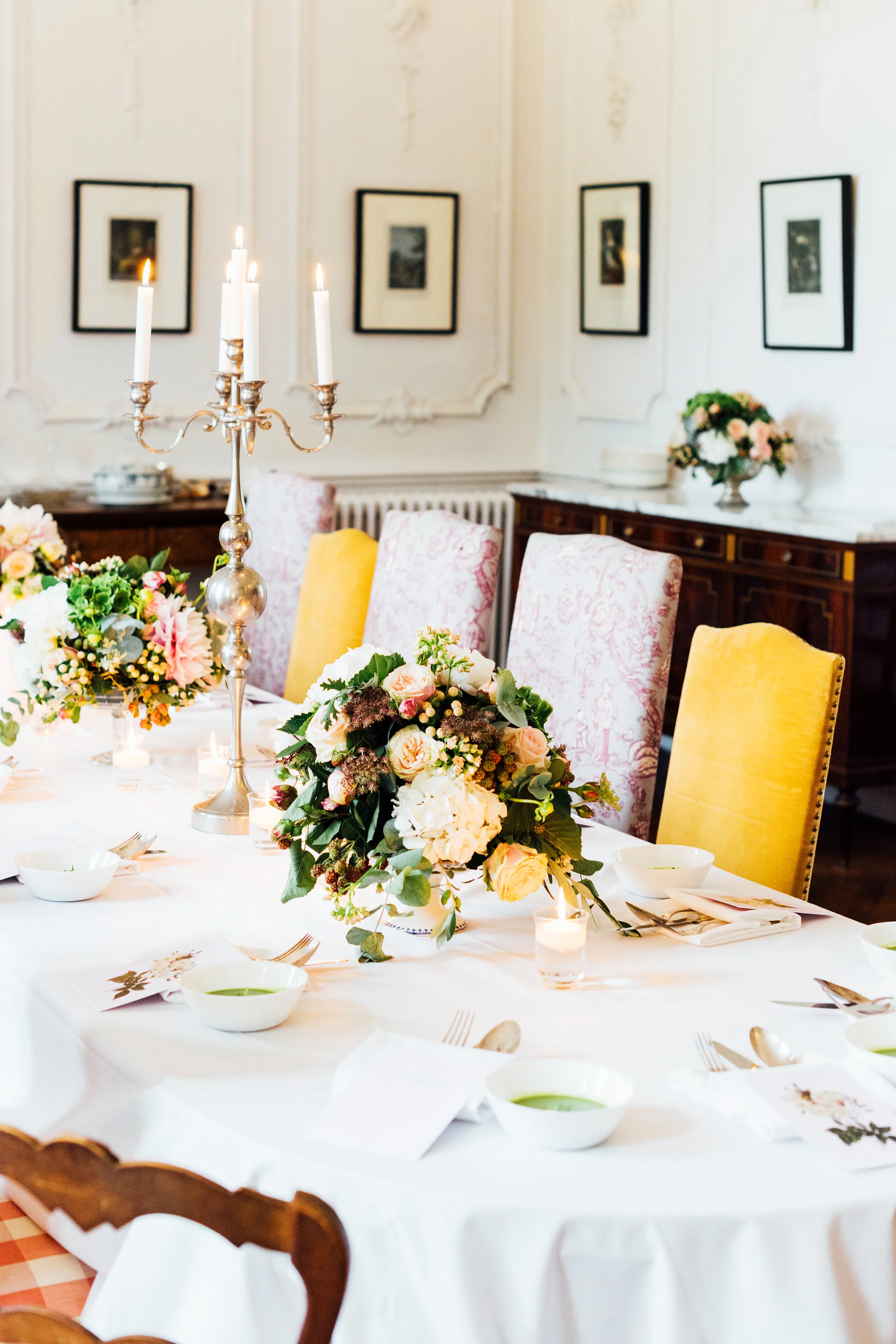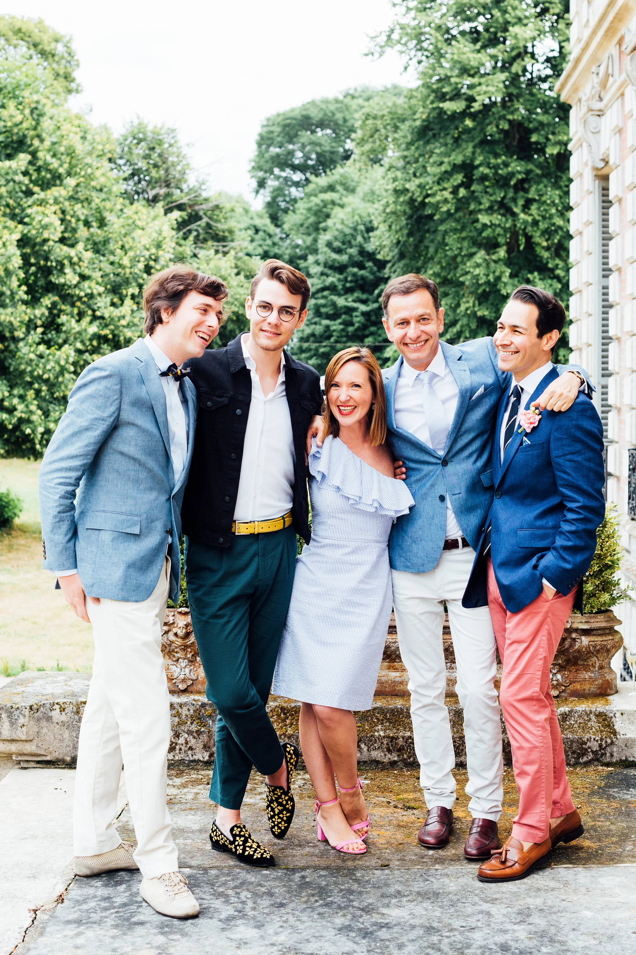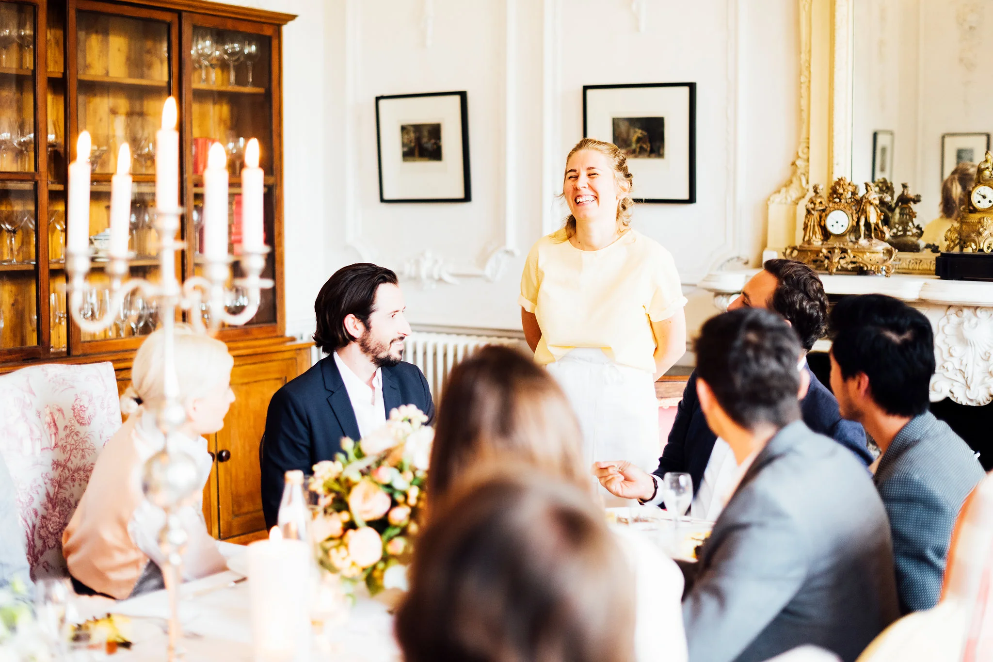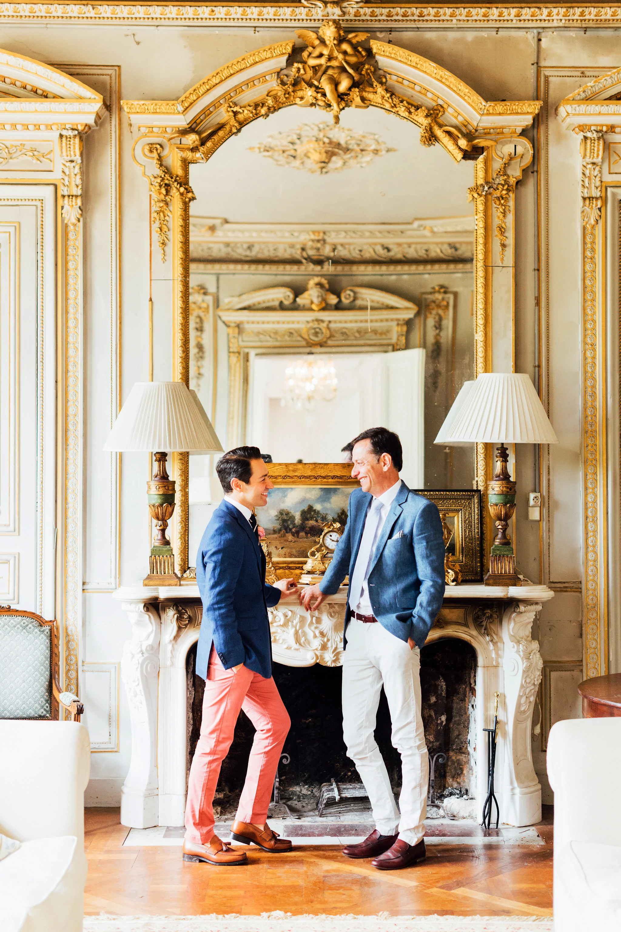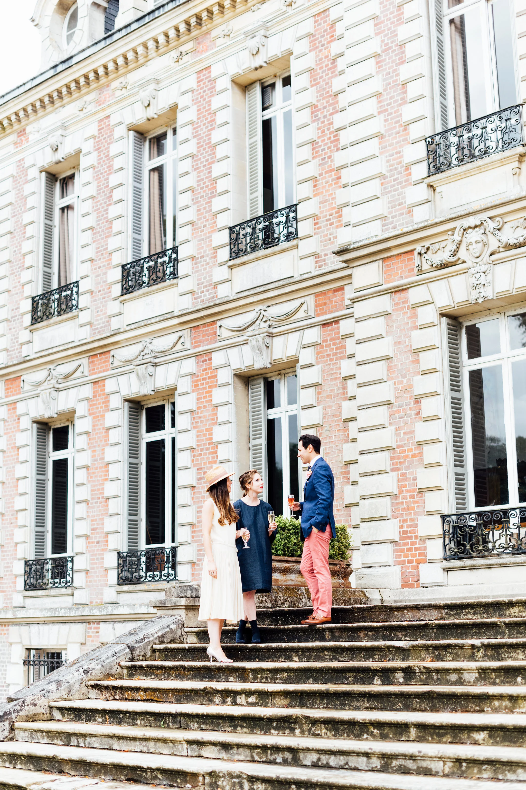Our original plan for the celebration was to host a glamorous garden party outdoors, underneath the shade of the Linden trees. However, after waking up Saturday morning to discover misty gray clouds had rolled in, we thought better of it. As a nice compromise we opted for cocktail hour in the garden followed by dinner inside the candle-lit dining room of the château. Before all this could commence, we pressed our best dress shirts and shined our shoes in anticipation of the arrival of all the guests.