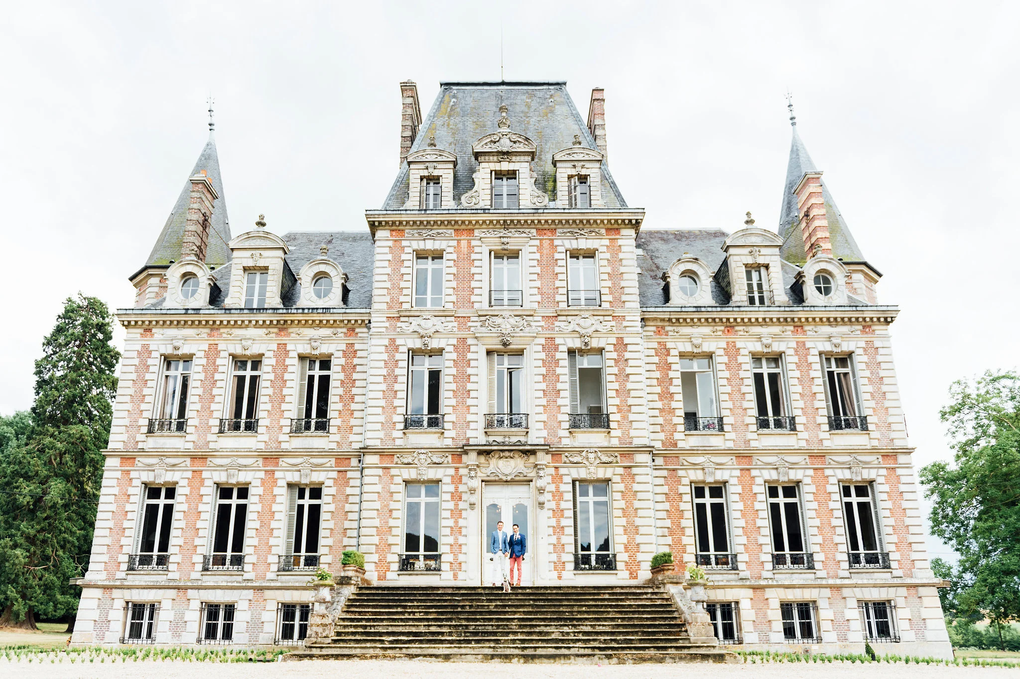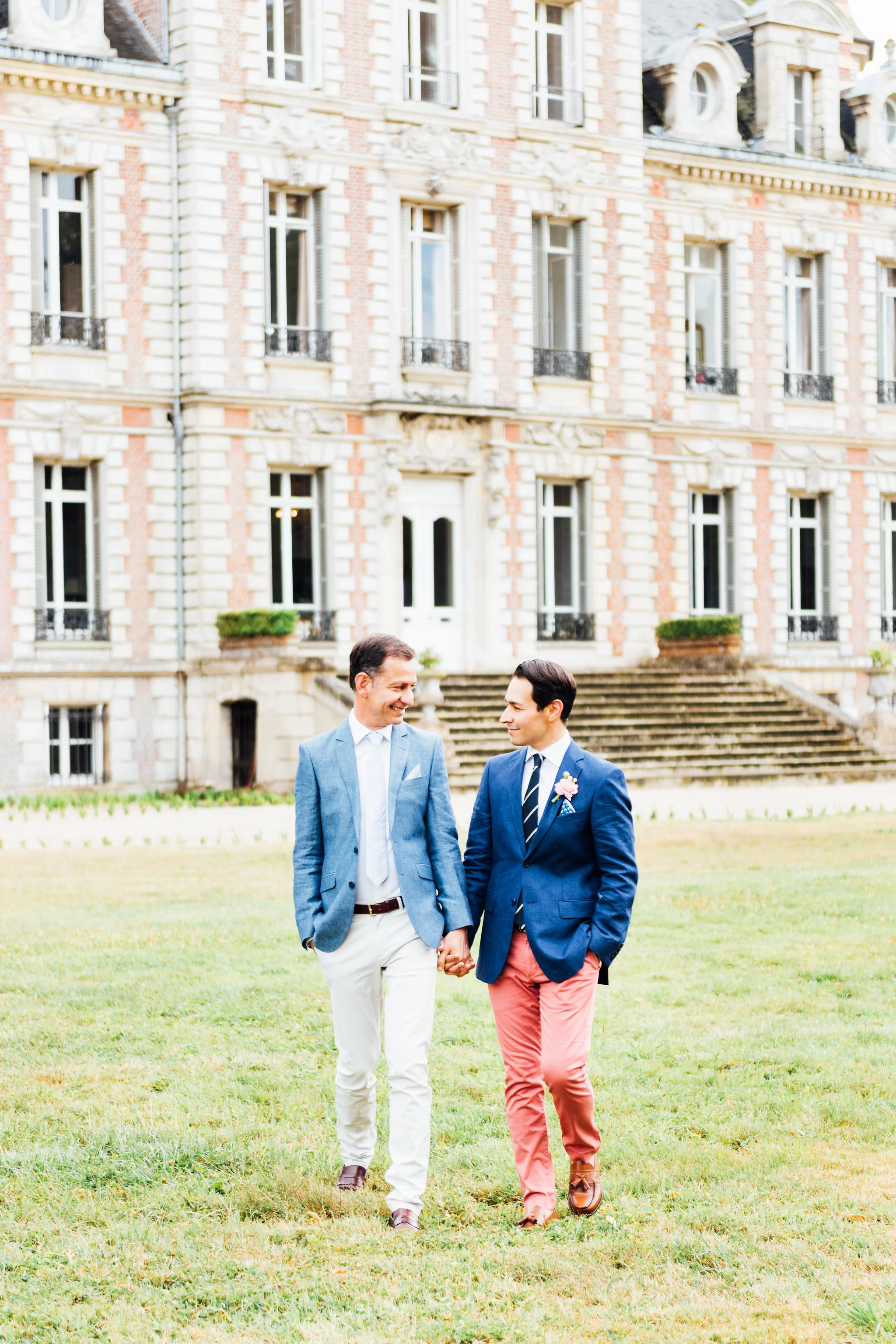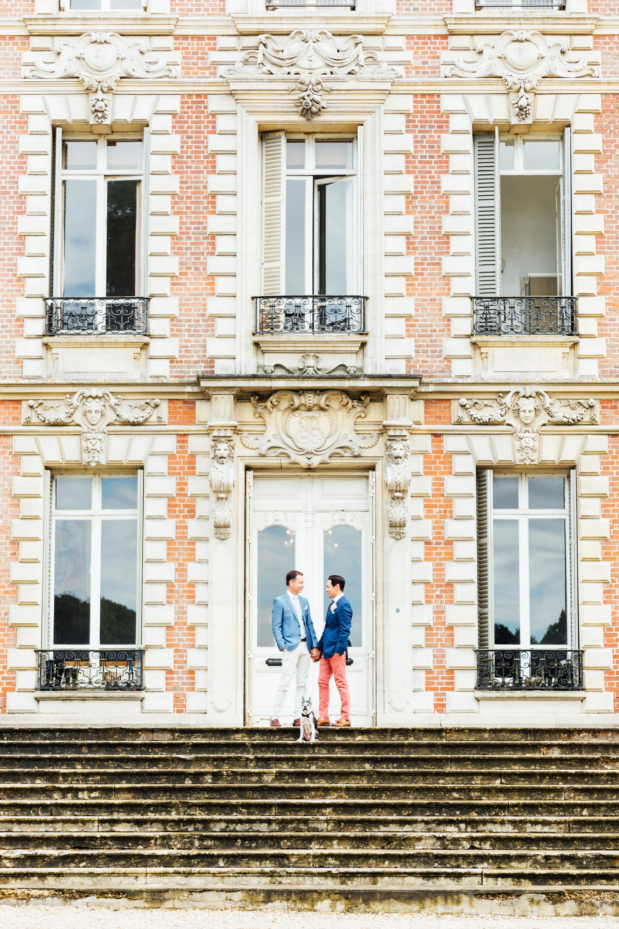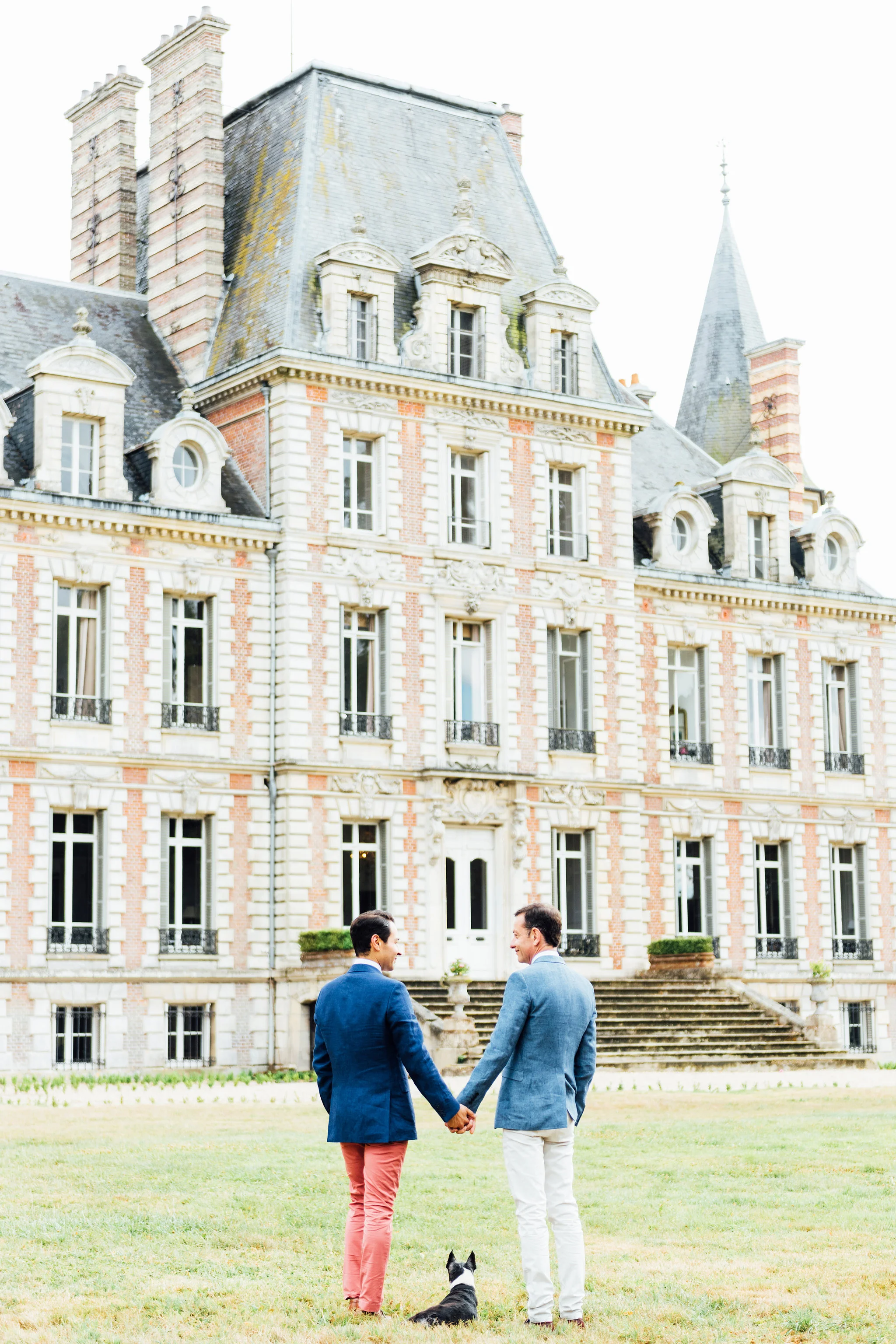 Our original plan for the celebration was to host a glamorous garden party outdoors, underneath the shade of the Linden trees. However, after waking up Saturday morning to discover misty gray clouds had rolled in, we thought better of it. As a nice compromise we opted for cocktail hour in the garden followed by dinner inside the candle-lit dining room of the château. Before all this could commence, we pressed our best dress shirts and shined our shoes in anticipation of the arrival of all the guests.