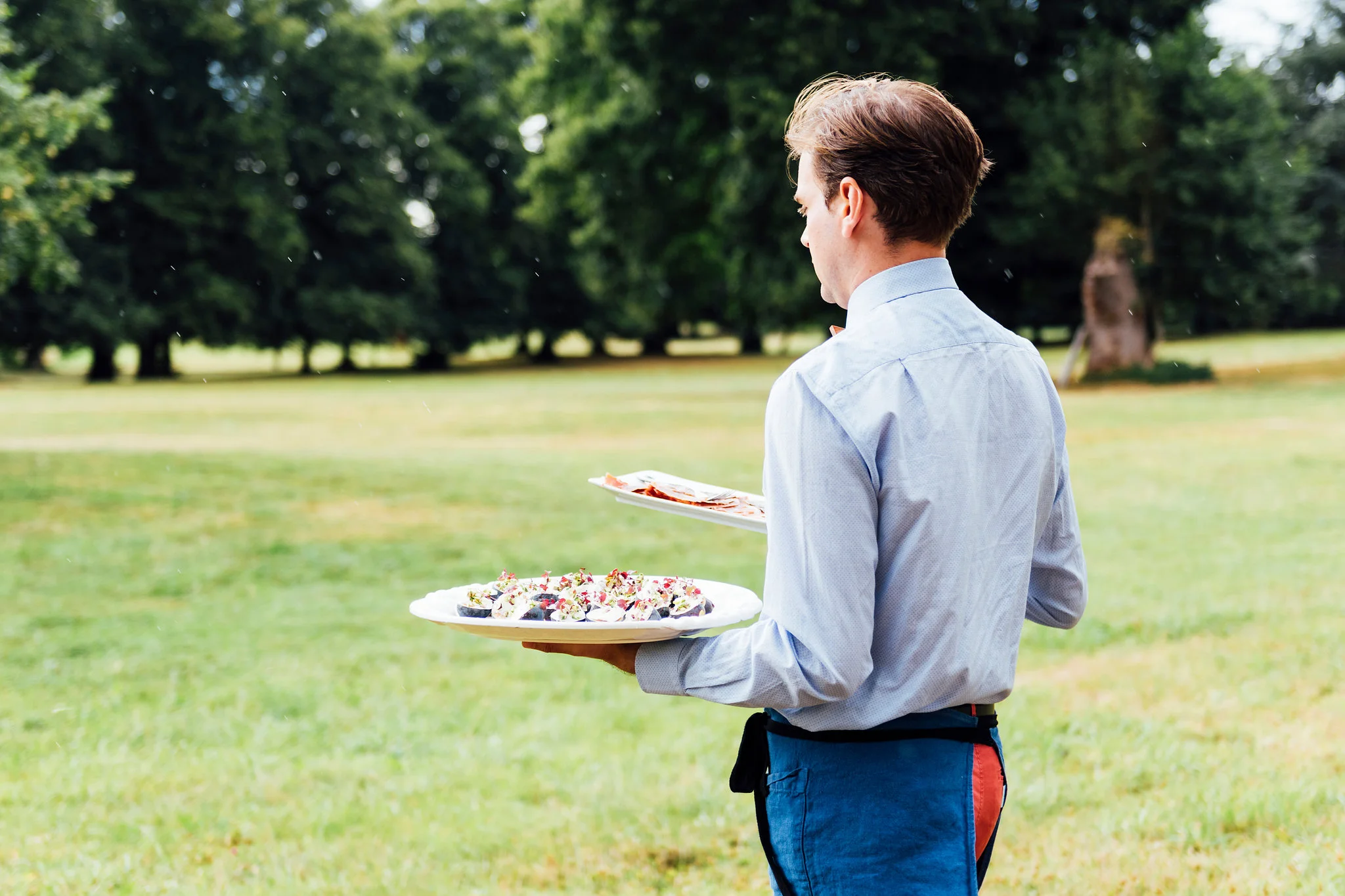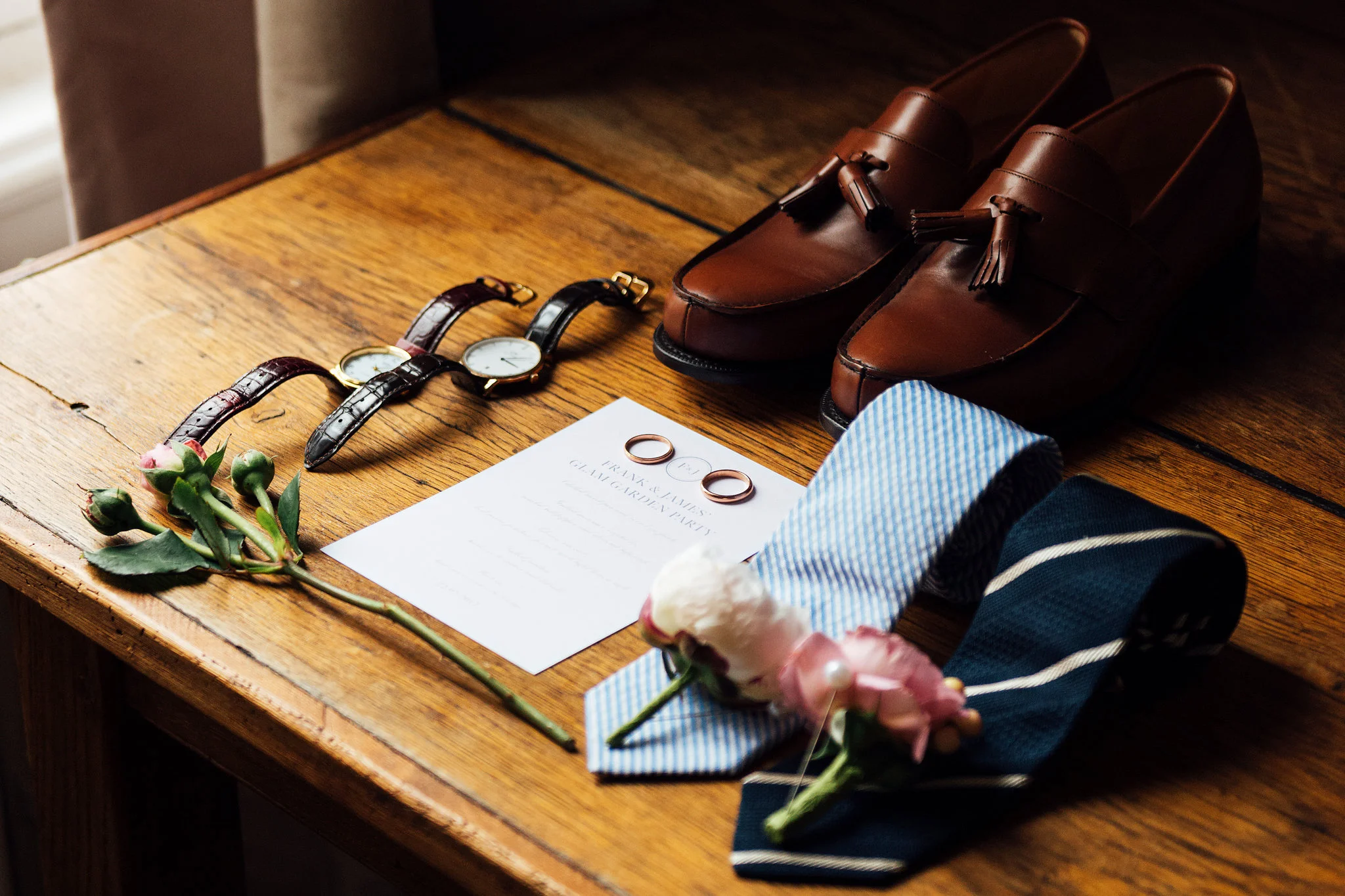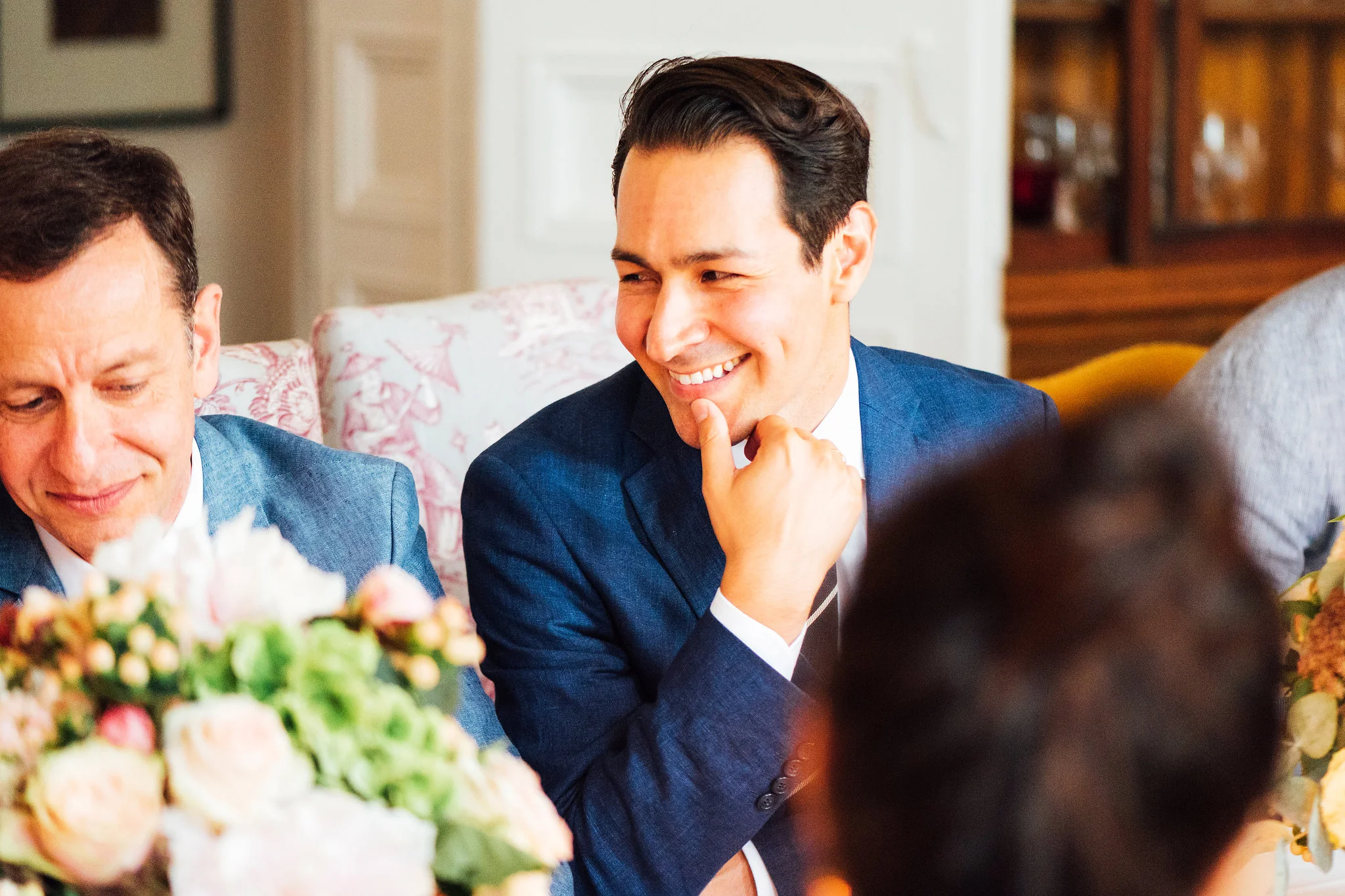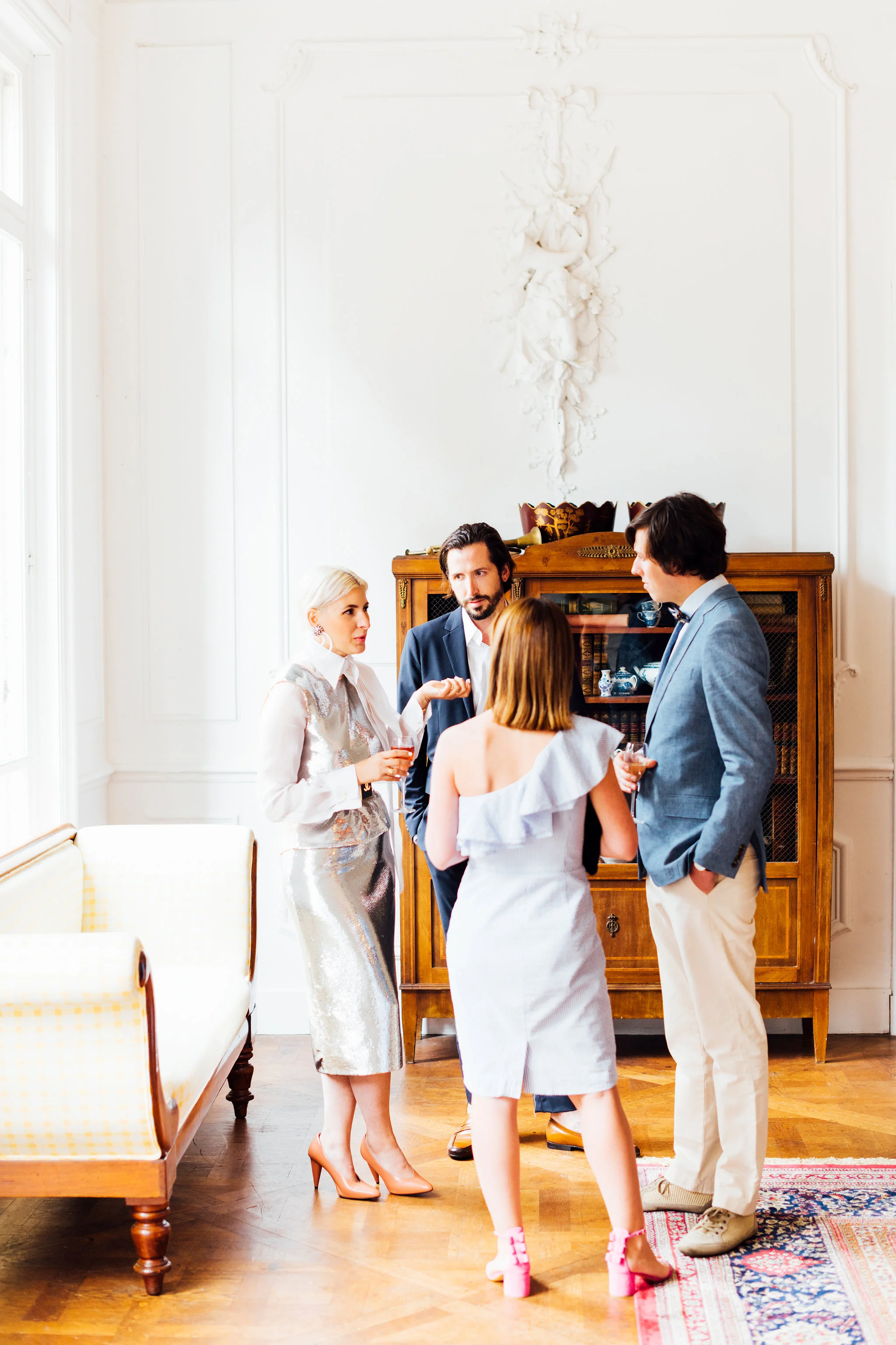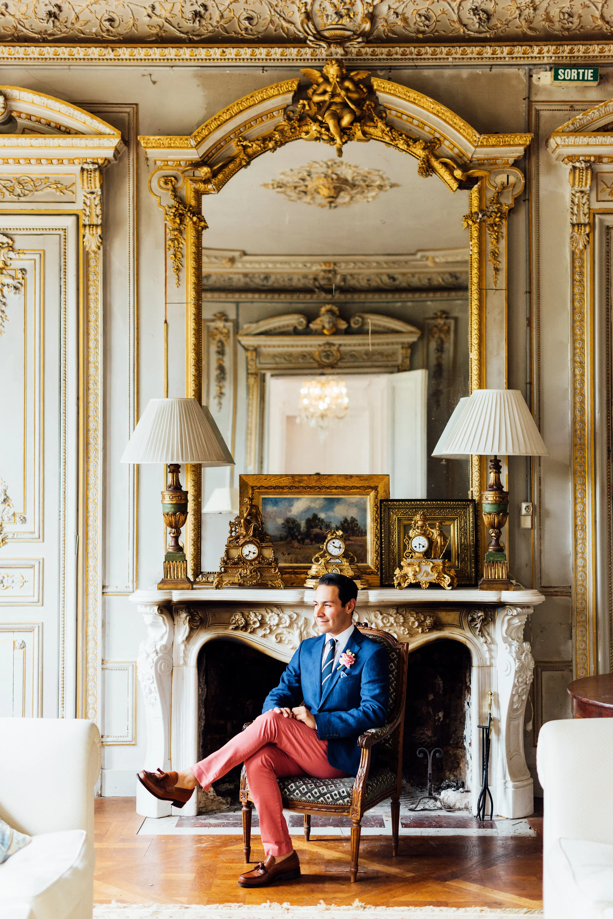 Our original plan for the celebration was to host a glamorous garden party outdoors, underneath the shade of the Linden trees. However, after waking up Saturday morning to discover misty gray clouds had rolled in, we thought better of it. As a nice compromise we opted for cocktail hour in the garden followed by dinner inside the candle-lit dining room of the château. Before all this could commence, we pressed our best dress shirts and shined our shoes in anticipation of the arrival of all the guests.
