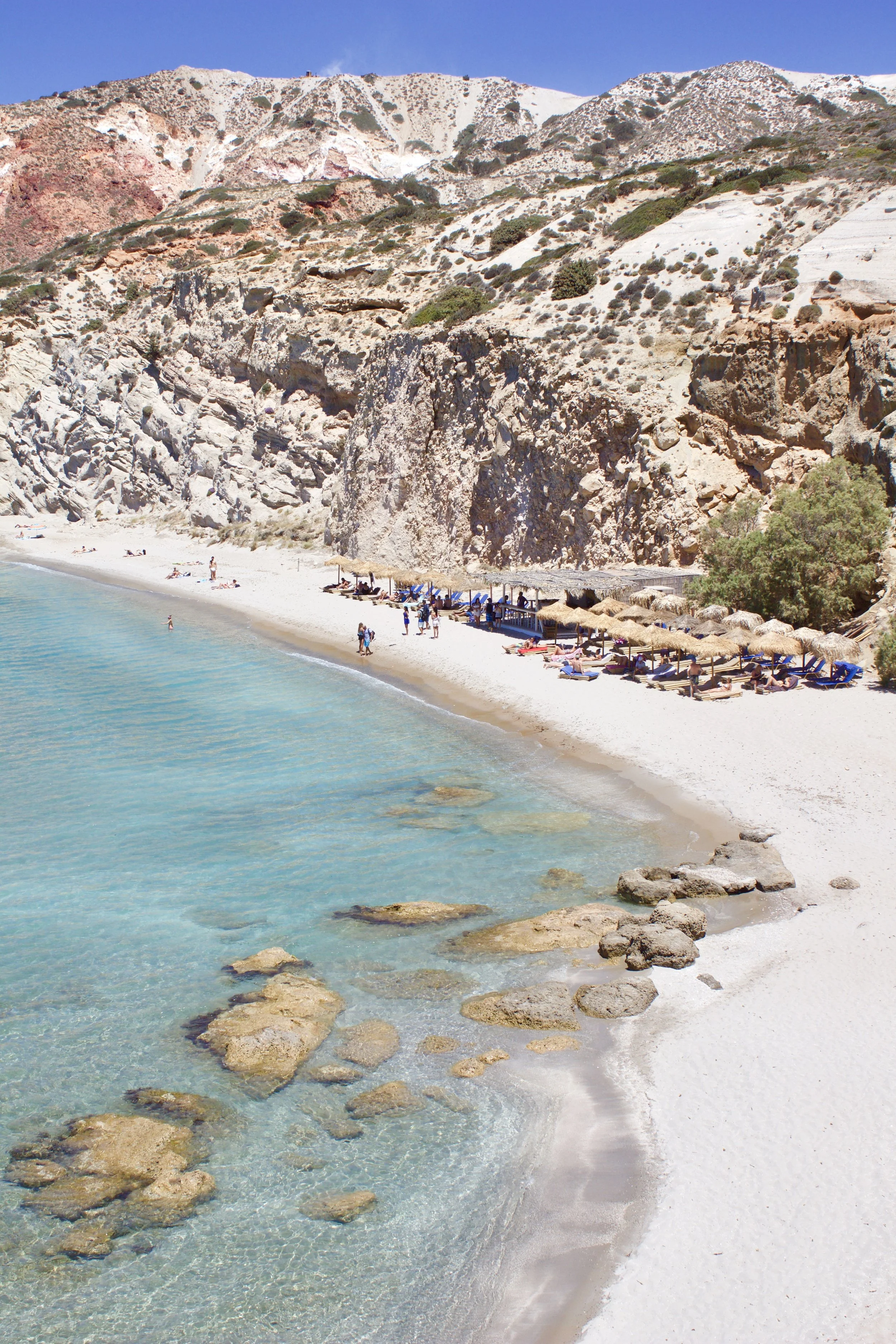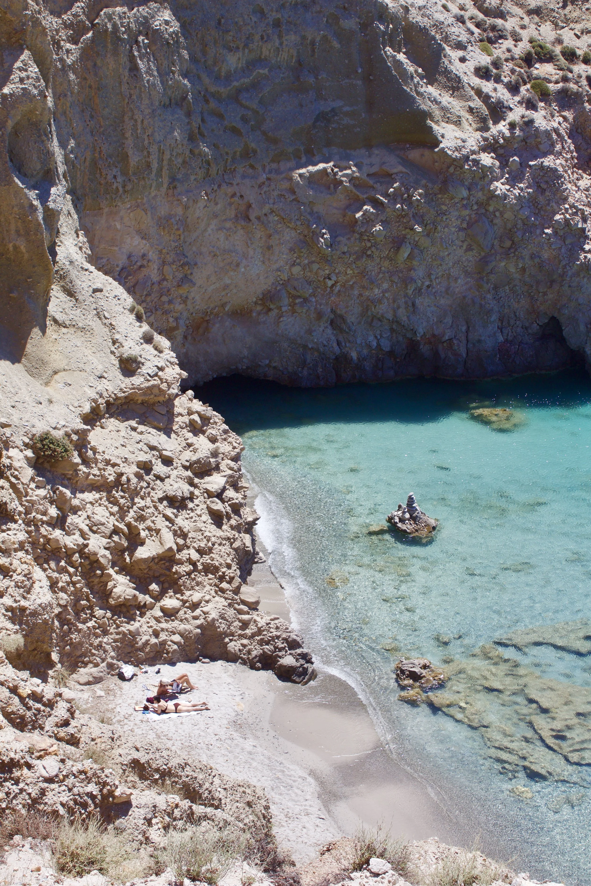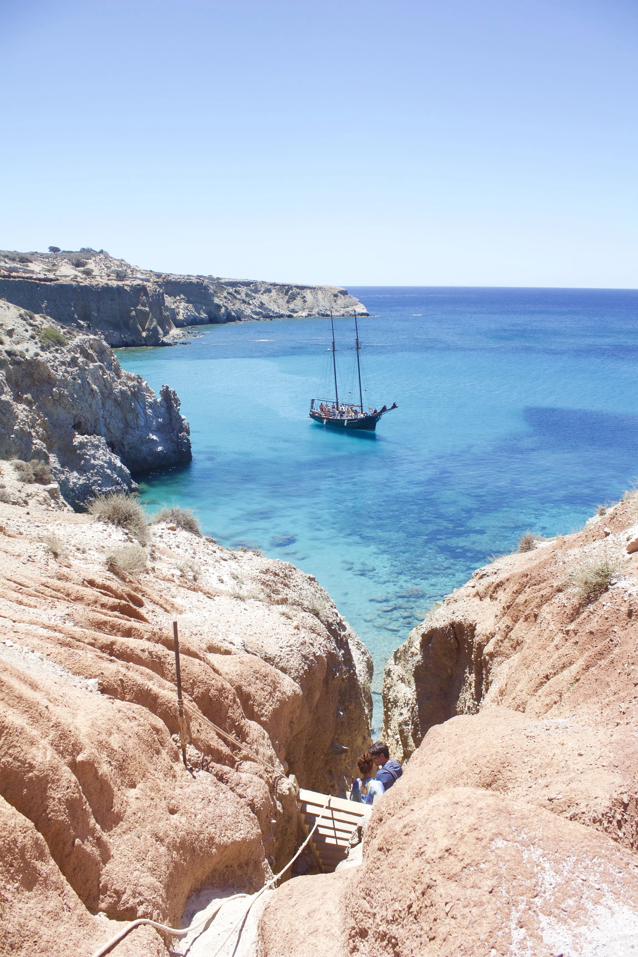 Tsigrado Beach, Milos. Accessible only by rope and ladder.