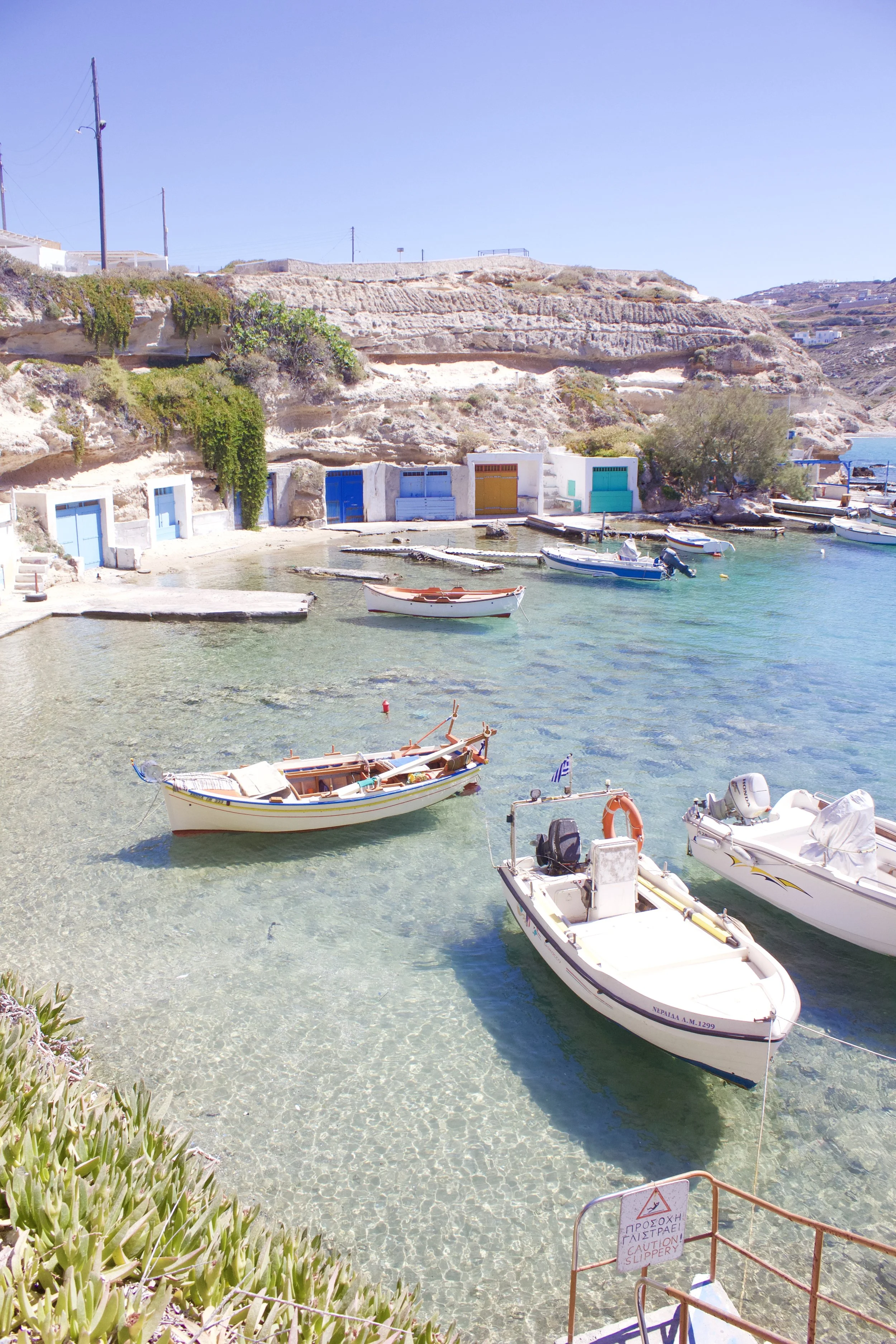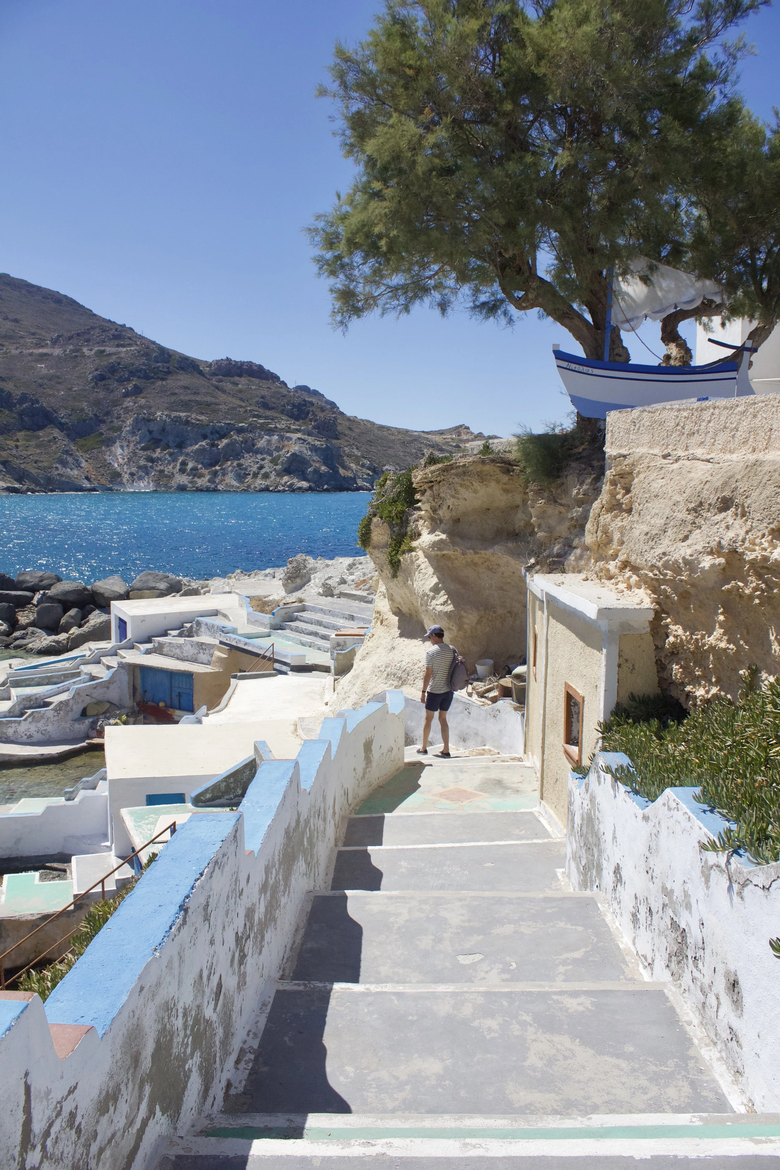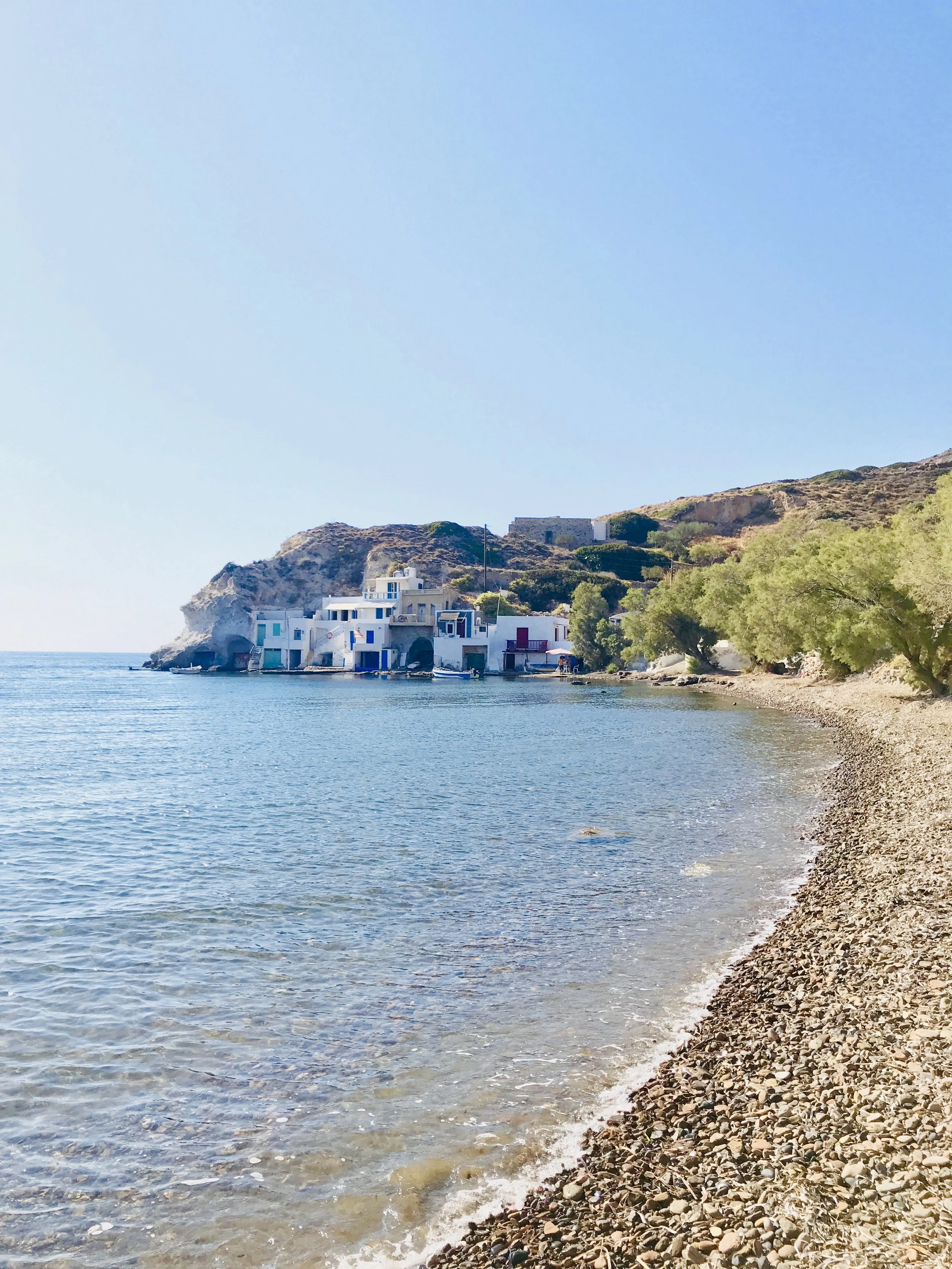 Our hideaway on Milos was called Skinopi Lodge a cluster of stone cottages sitting on a golden hillock overlooking a tiny fishing village. We liked to trek down the path to the sea below for a morning dip while watching the local fishermen emerge from their syrma, a two-level structure built at water-level and backed up into the rocky outcrop. After a day of beach-hopping, we would pick up some provisions to dine al fresco at the lodge and watch the sail boats lazily drift by, culminating in dramatic sunsets with Greek wine in-hand.